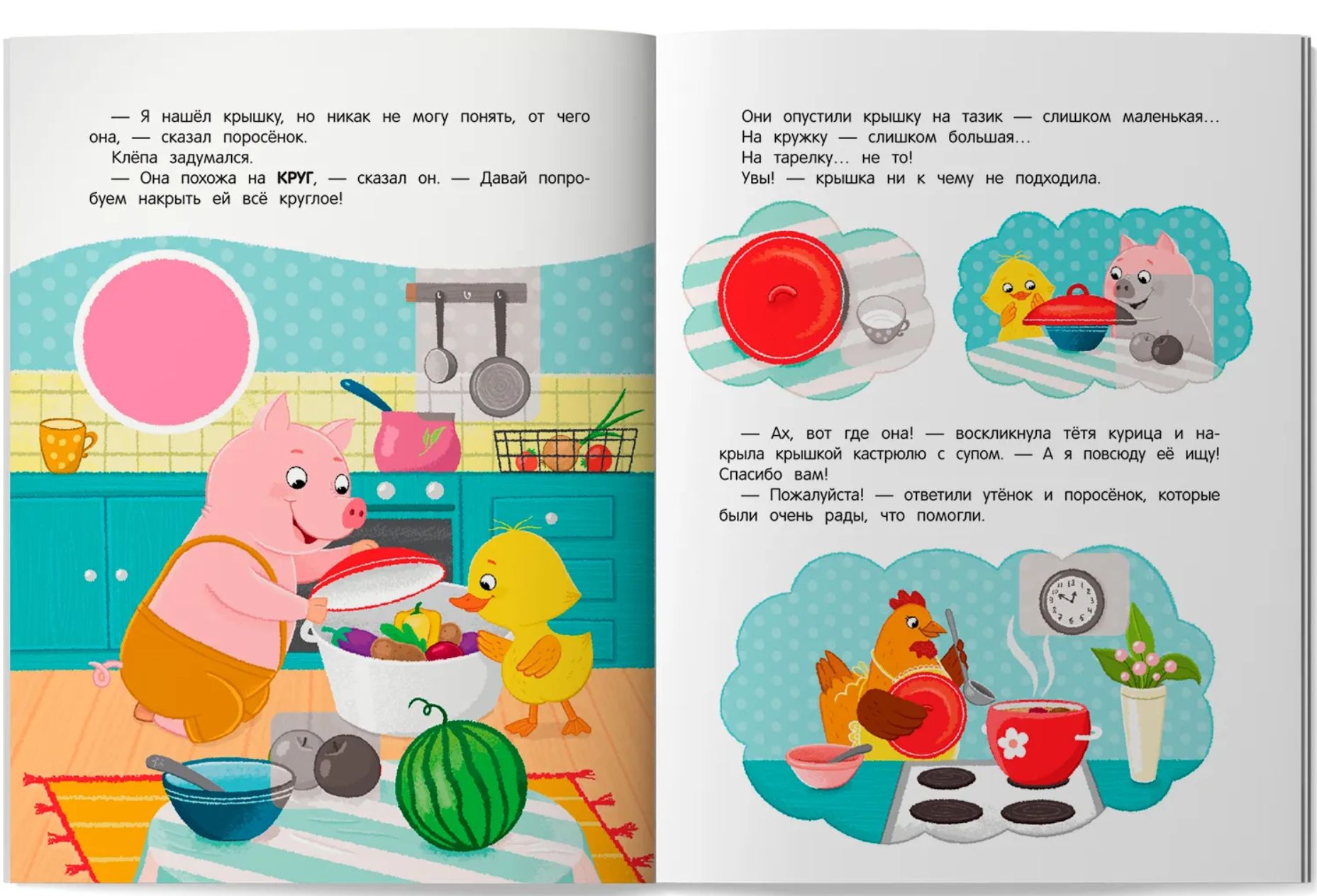 Маленький утёнок Клёпа любопытный и непоседливый. Ему интересно всё, что происходит вокруг. В книгах этой серии через увлекательную историю малыши вместе с утёнком будут узнавать новое об окружающем мире, научатся считать, различать цвета и формы, подбирать слова с противоположным значением, познакомятся с животными леса и фермы. 35 наклеек в каждой книге сделают уроки весёлыми и запоминающимися!