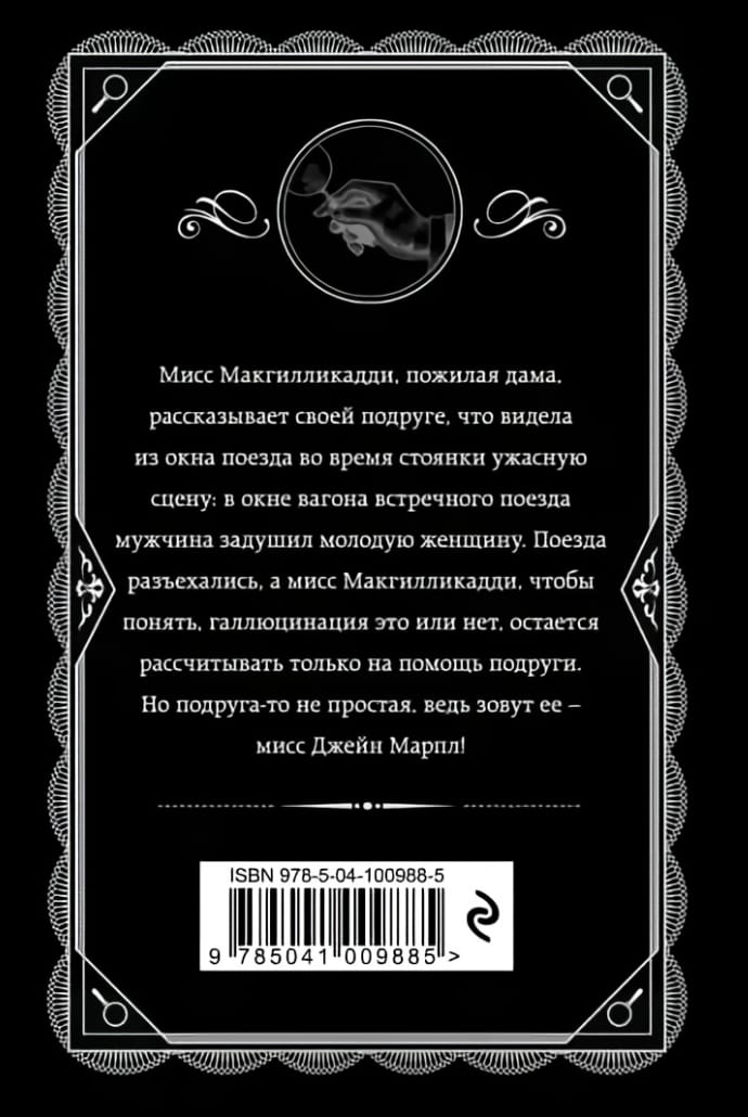 Мисс Макгилликадди, пожилая дама, рассказывает своей подруге, что видела из окна поезда во время стоянки ужасную сцену: в окне вагона встречного поезда мужчина задушил молодую женщину. Поезда разъехались, а мисс Макгилликадди, чтобы понять, галлюцинация это или нет, остается рассчитывать только на помощь подруги. Но подруга-то не простая, ведь зовут ее – мисс Джейн Марпл!