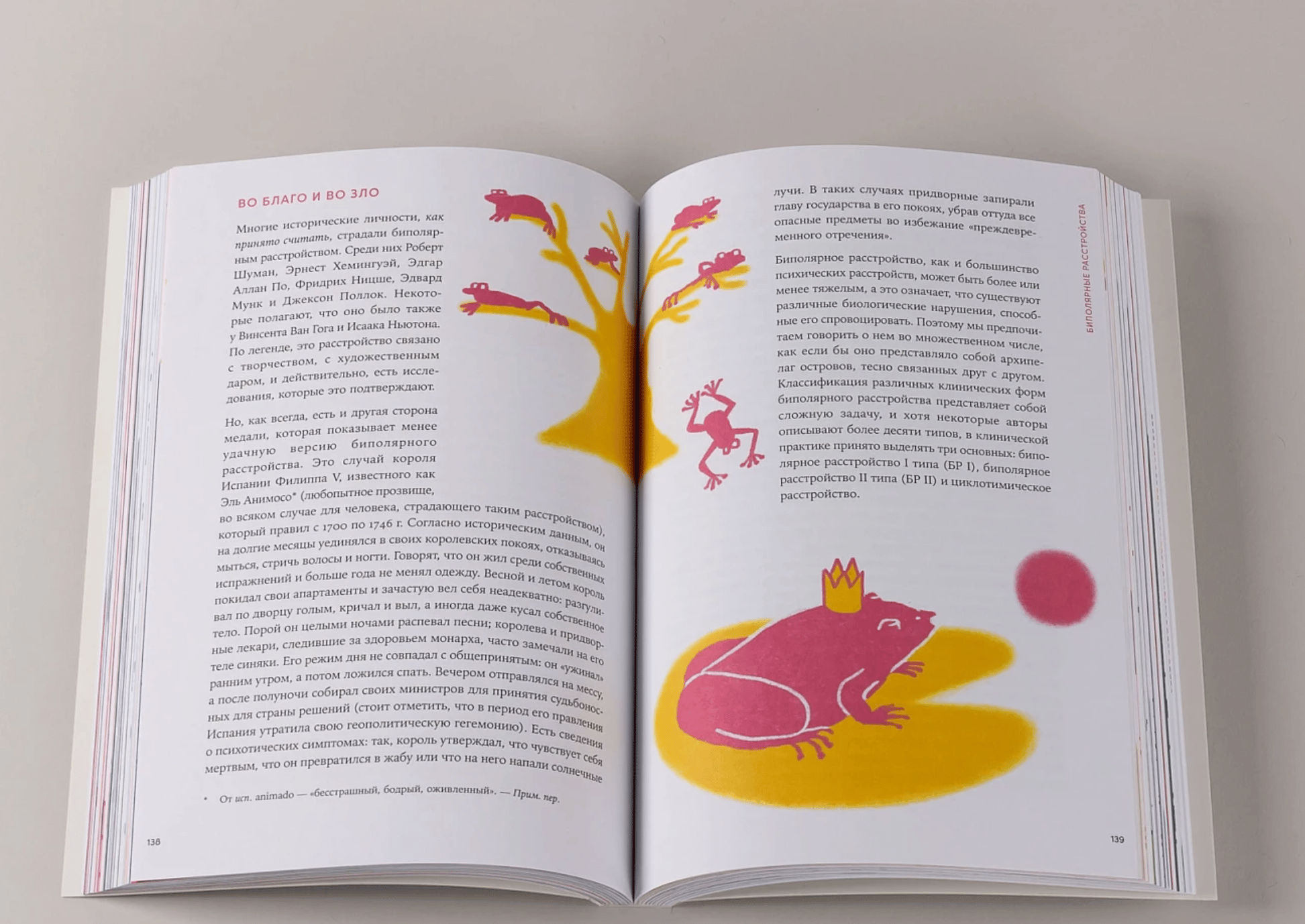 По оценкам специалистов, более миллиарда человек в мире страдают от самых разных психических расстройств: тревоги, депрессии, шизофрении, биполярного расстройства, посттравматического стресса, расстройств пищевого поведения и др. Испанский психиатр Кристиан Льяч просто и понятно рассказывает о том, что эти расстройства из себя представляют, что чувствуют люди, им подверженные, каковы основные симптомы и методы лечения таких расстройств. Автор также знакомит читателей с историей развития психиатрии как науки, дает краткие сведения об анатомии и физиологии мозга, о важных ролях биологии и генетики в формировании нервной системы человека, пишет о влиянии социума на развитие психики и о важности правильного отношения к пациентам с психическими расстройствами. Иллюстрации Валентины Сильва помогают закрепить в памяти важную информацию.