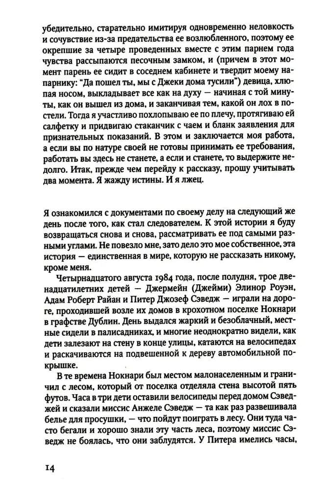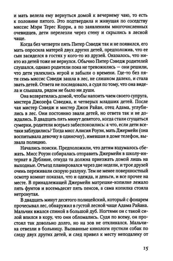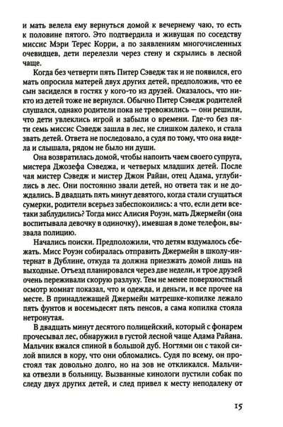 Летом 1984 года, когда сумерки опускаются на идиллический поселок в пригороде Дублина, матери зовут своих детей домой. Но в этот теплый вечер из темного и безмолвного леса не возвращаются трое детей, два мальчика и девочка. Полиция найдет только одного мальчика, Адама. Он в ужасе прижимается к стволу старого дерева, его кроссовки пропитались кровью, и он ничего не помнит...