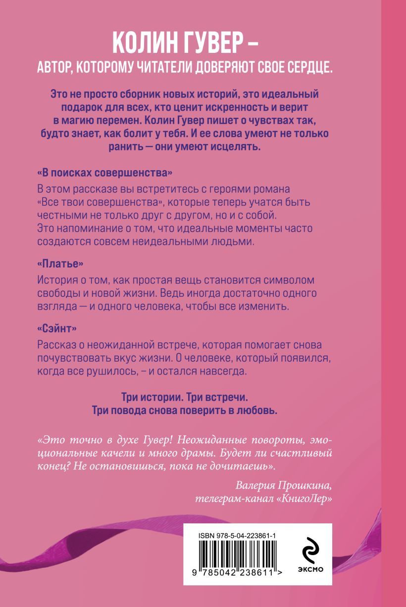 Это не просто сборник новых историй любимого автора, это идеальный подарок для всех, кто ценит искренность и верит в магию перемен. Колин Гувер пишет о чувствах так, будто знает, как болит у тебя. И ее слова умеют не только ранить — они умеют исцелять.