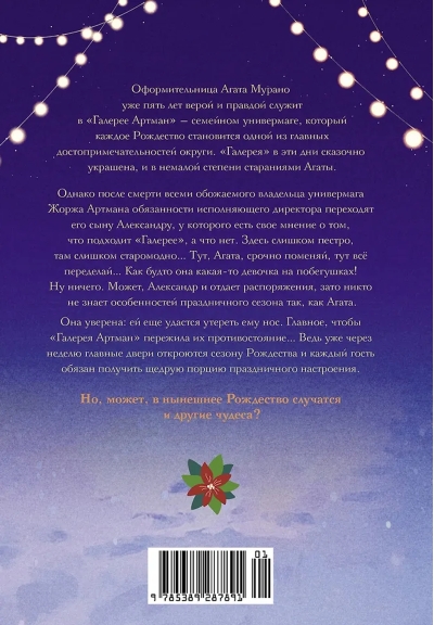 Ну ничего. Может, Александр и отдает распоряжения, зато никто не знает особенности праздничного сезона так, как Агата. Она уверена: ей еще удастся утереть ему нос. Главное, чтобы «Галерея Артман» пережила их противостояние… Ведь уже через неделю главные двери откроются сезону Рождества, и каждый гость обязан получить щедрую порцию праздничного настроения.