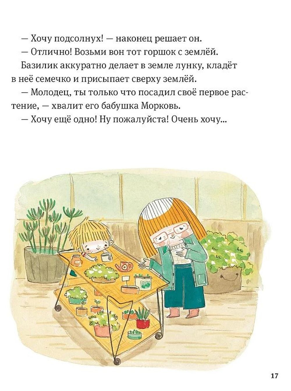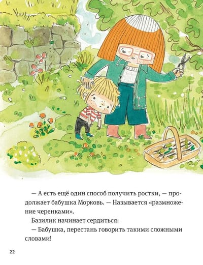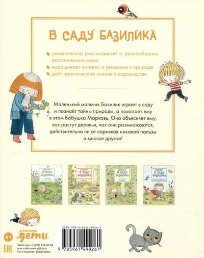 Серия «В саду Базилика» — это познавательные книги для самых маленьких об удивительном мире растений. Бабушка Морковь найдёт ответы на самые разные вопросы своего внука Базилика: могут ли растения любить, как у них появляются дети, какими способностями они обладают и что умеют.