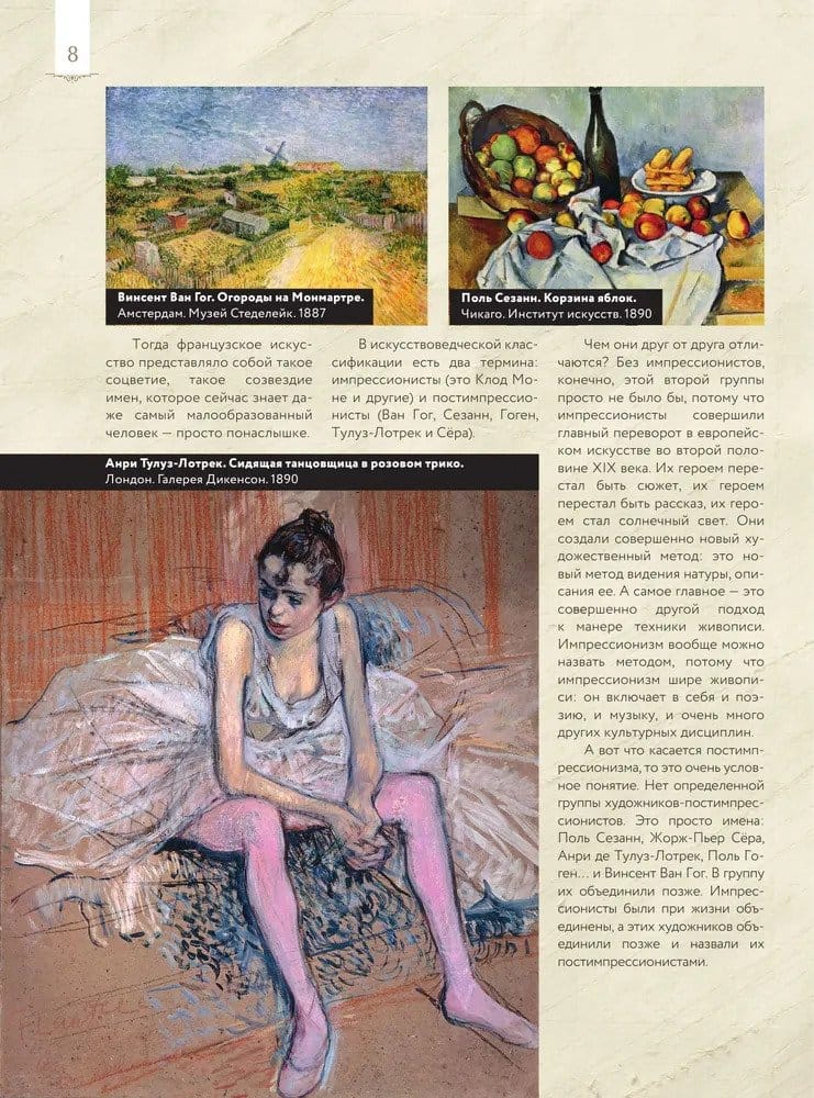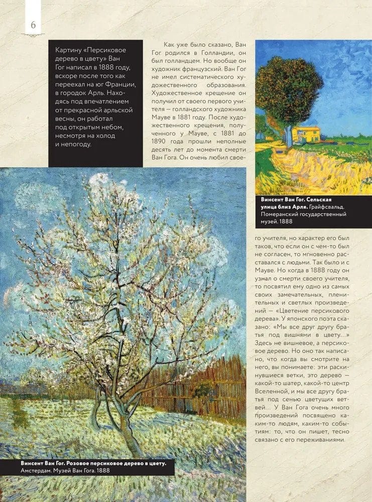 Благодаря этой книге вы сможете ближе познакомиться с жизнью и работами ярчайшего представителя импрессионизма. Ван Гог как художник работал очень мало — неполные десять лет. Представить себе сейчас жизнь такой интенсивности практически невозможно, но тем не менее за это время художник создал более двух тысяч картин, которые вошли в сокровищницу мирового искусства. На протяжении всей жизни Винсент переписывался с братом Тео. Эти письма — не только невероятный литературный труд, историческое исследование, точное описание эпохи, но и глубочайшая по искренности исповедь художника о сути творчества. Материал расположен таким образом, чтобы вам было удобно рассматривать отдельные фрагменты картин, подробно изучить эскизы и письма и тут же возвращаться к тексту, всегда расположенным рядом с предметом исследования. Предисловие к книге написано известным искусствоведом Паолой Волковой.