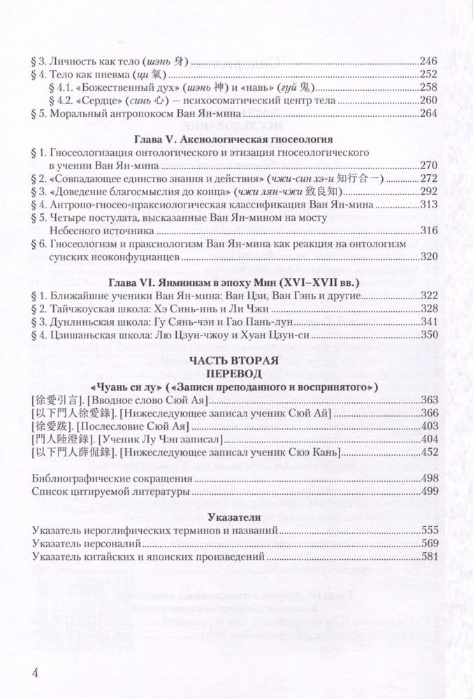 Монография посвящена жизни и творчеству Ван Ян-мина (王陽明, или Ван Шоу-жэня 王守仁, 1472–1529) — одного из крупнейших китайских философов, создателя оригинальной доктрины в русле «учения о сердце» (心學 синь-сюэ), выдающегося литератора, военачальника, государственного деятеля. Его философия легла в основу всех наиболее развитых форм неоконфуцианства в Китае и сопредельных странах, особенно в Японии, где стала ведущим духовным течением в период, предшествовавший Реставрации Мэйдзи (1868–1869). Ныне в КНР идеи и образ Ван Ян-мина обрели необычайную популярность, а сам он воспринимается как выдающийся представитель китайской культуры, государственный деятель и педагог, создавший международно значимое учение. В монографии показаны драматические перипетии его жизни и идейного наследия в диапазоне от духовного лидерства и канонизации до запрещения и поругания. Подробно освещено отношение к личности и творчеству Ван Ян-мина в КНР, особенно в последнее время, когда из замалчиваемой персоны нон грата он превратился в превозносимую на высшем уровне, широко изучаемую и часто публикуемую культовую фигуру со своеобразными священными местами в мемориалах и исследовательских центрах на родине в Шаосине (в провинции Чжэцзян) и в Гуйяне (столице провинции Гуйчжоу), где отбывал ссылку. Данная научно-исследовательская и текстологическая работа, помимо наиболее полного описания и анализа учения Ван Ян-мина и его ближайших последователей в эпоху Мин (1368–1644), содержит первый в отечественной синологии и историко-философской науке комментированный перевод с древнекитайского письменно-литературного языка вэнь-яня важнейшей первой части его главного произведения — «Чуань-си лу» (傳習錄 «Записи преподанного и воспринятого»).