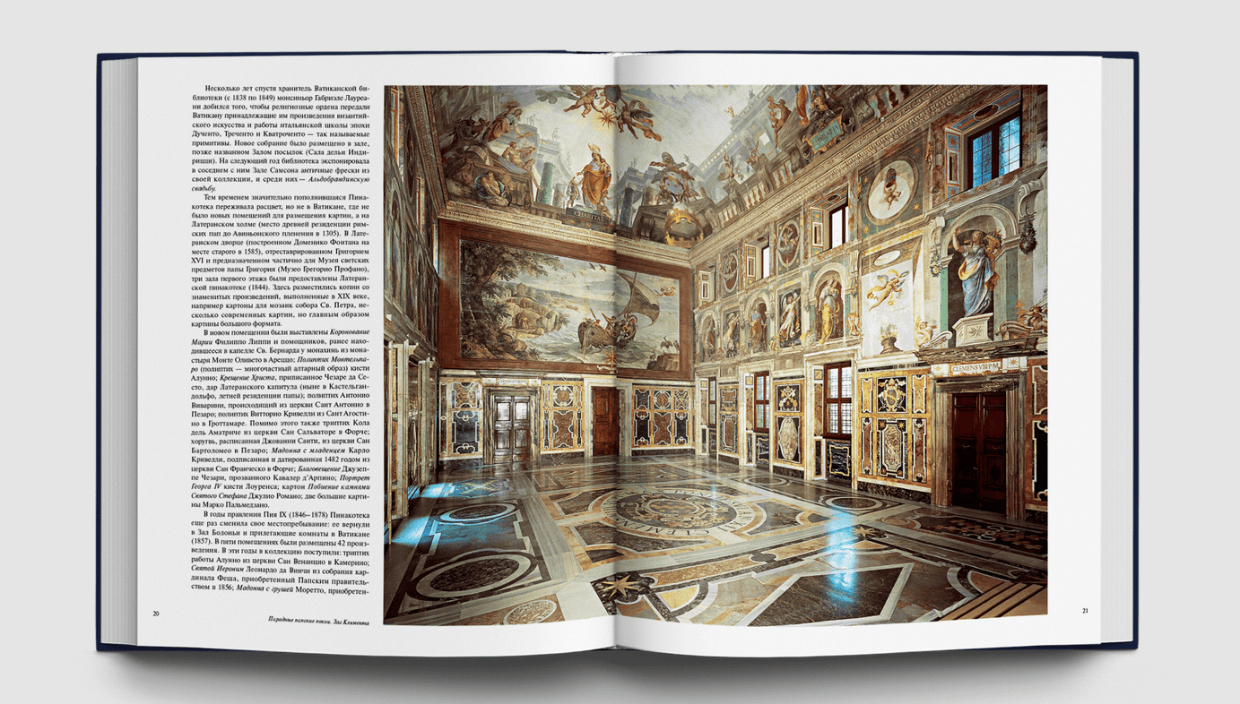 Ватикан — один из самых блистательных музейных комплексов мира. Его коллекции завораживающих фресок и картины, алтарных образов и скульптур собирали римские первосвященники, каждый из которых был яркой неповторимой личностью. Величественные дворцы и залы Ватикана проектировали и украшали великие мастера: Браманте и Микеланджело, Рафаэль и Боттичелли, Перуджино и Гирландайо, Пинтуриккьо и Вазари, роскошный Бернини и многие другие архитекторы, скульпторы и живописцы, стремившиеся сделать папскую обитель богатой и торжественной. Прекрасные росписи и сегодня покрывают стены и своды Сикстинской капеллы, Станц и Лоджий Рафаэля, апартаментов Борджа, капеллы Николлина.