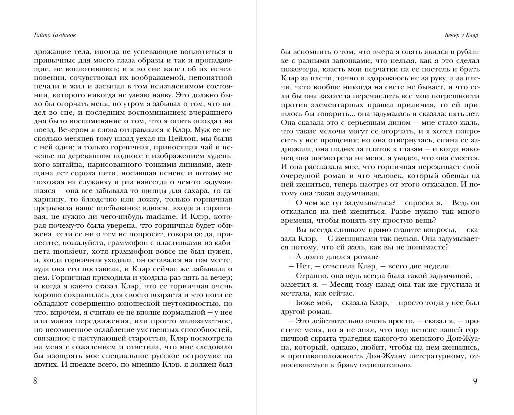 Действие романа «Вечер у Клэр» происходит в Париже 1920-х годов. Русский эмигрант Николай встречает очаровательную француженку Клэр, в которую влюбился еще в 1917 году в дореволюционном Петербурге.