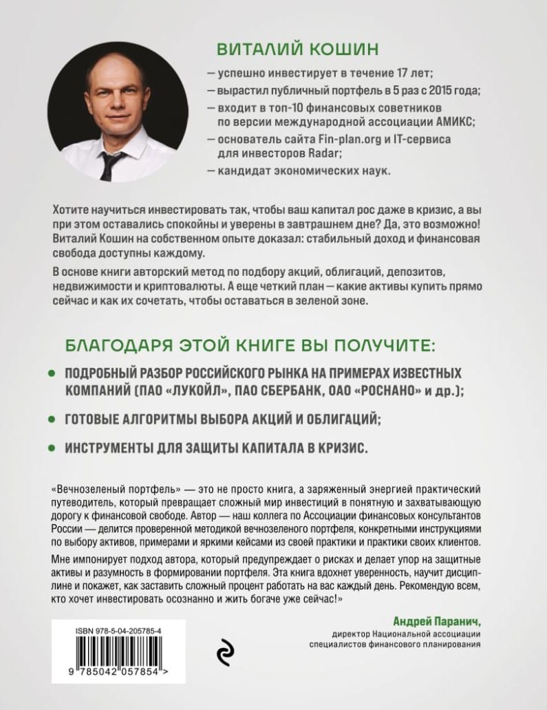 В основе книги авторский метод по подбору акций, облигаций, депозитов, недвижимости и криптовалюты. А еще четкий план — какие активы купить прямо сейчас и как их сочетать, чтобы оставаться в зеленой зоне.