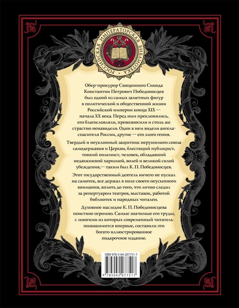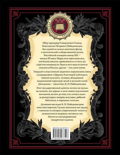 Интеллектуальное наследие Константина Победоносцева поистине огромно. Самые яркие его работы, с некоторыми из которых современный читатель познакомится впервые, составили это подарочное издание. Книга сопровождается богатым иллюстративным материалом – он с документальной точностью явит представленную эпоху не только в словах ее главных действующих лиц, но и в зримых, часто в навсегда утраченных образах.
