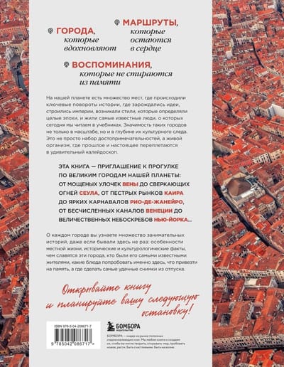 Эта книга — приглашение к прогулке по Великим городам нашей планеты — от мощеных улочек Вены до сверкающих огней Сеула, от пестрых рынков Каира до ярких карнавалов Рио-де-Жанейро, от бесчисленных каналов Венеции до величественных небоскребов Нью-Йорка...
