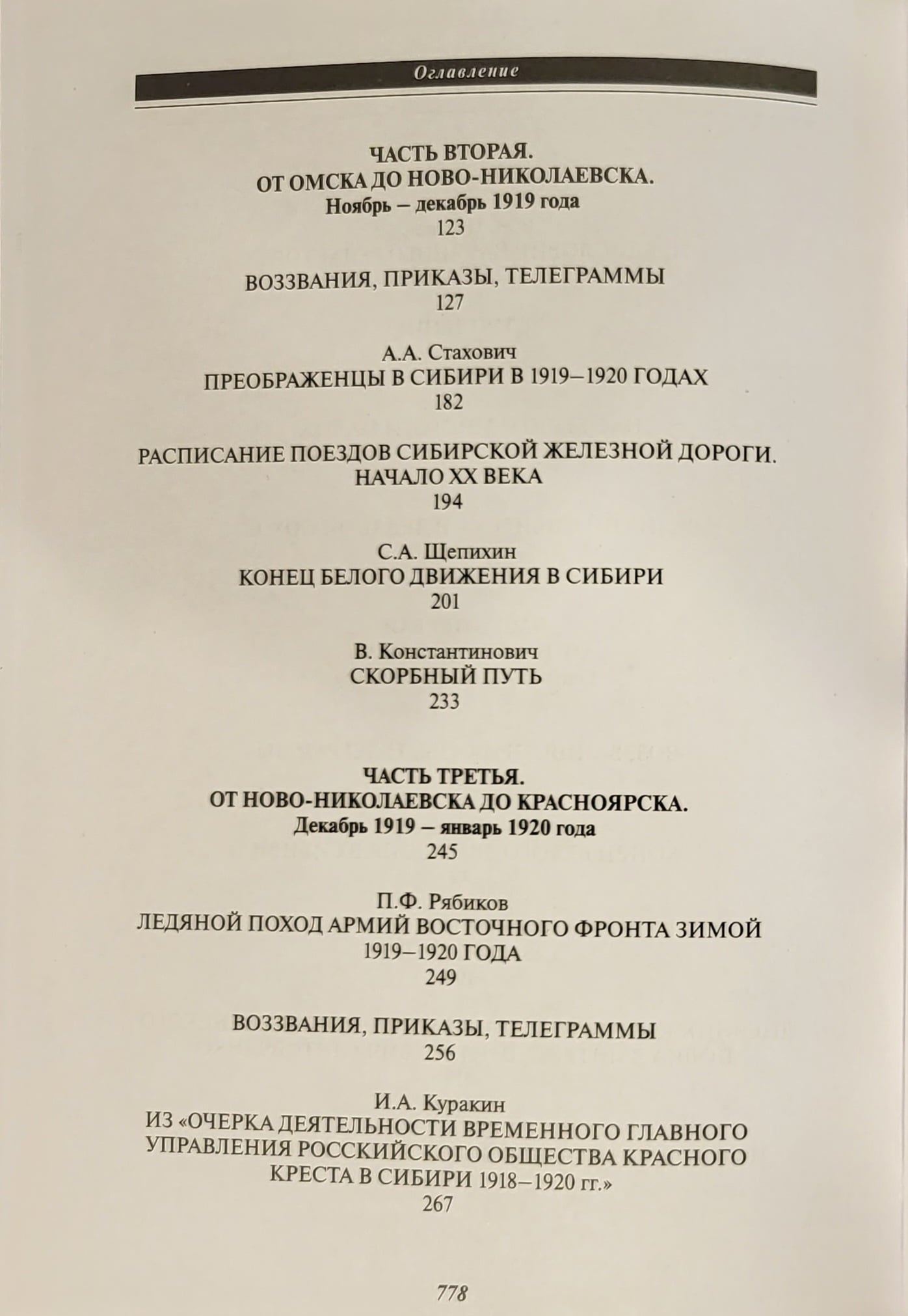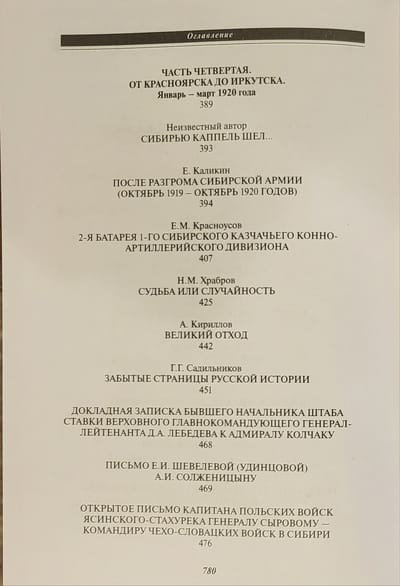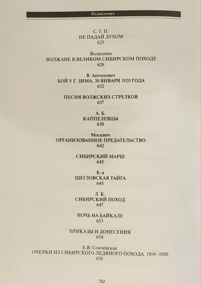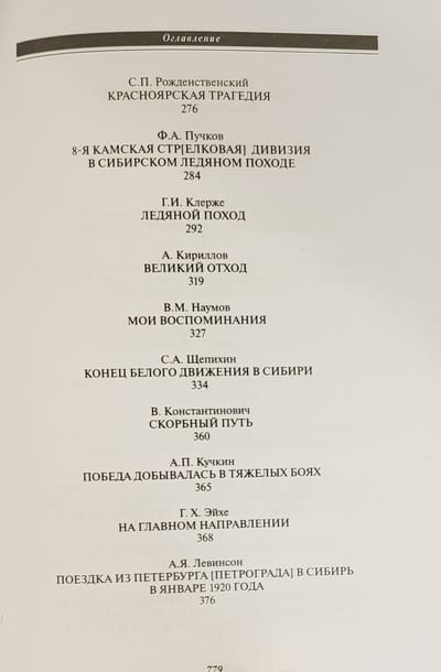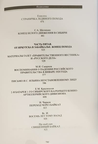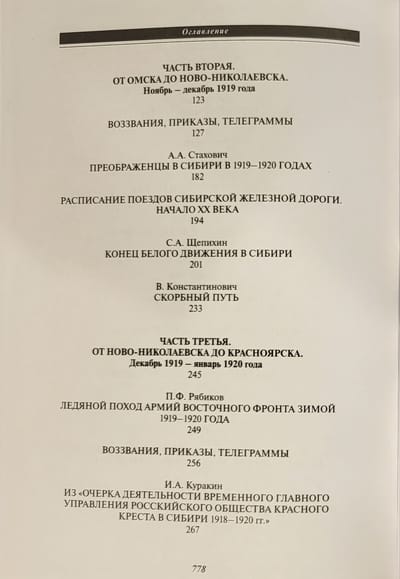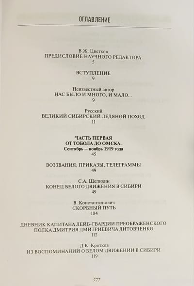 Сборник «Великий Сибирский Ледяной поход» — тринадцатая книга серии «Белые воины» — это наиболее полная на данный момент в историографии подборка уникальных документальных материалов, которые или не публиковались ранее, или публиковались преимущественно в малотиражных изданиях Русского Зарубежья. Документы отражают все периоды Великого Сибирского Ледяного похода Восточного фронта адмирала А.В. Колчака: от боевых действий накануне падения столицы Белой России Омска в октябре–ноябре 1919 г. до перехода оставшихся боеспособных подразделений через озеро Байкал в Забайкалье в феврале 1920-го. В сборнике читатель найдет уникальные свидетельства об эвакуации армии и населения по Транссибирской железной дороге, о тяжелейшем походе частей каппелевцев по сибирской тайге, о последних месяцах жизни Александра Васильевича Колчака, об отношениях с союзниками, а также о действиях Красной армии и красных партизан в Сибири.
