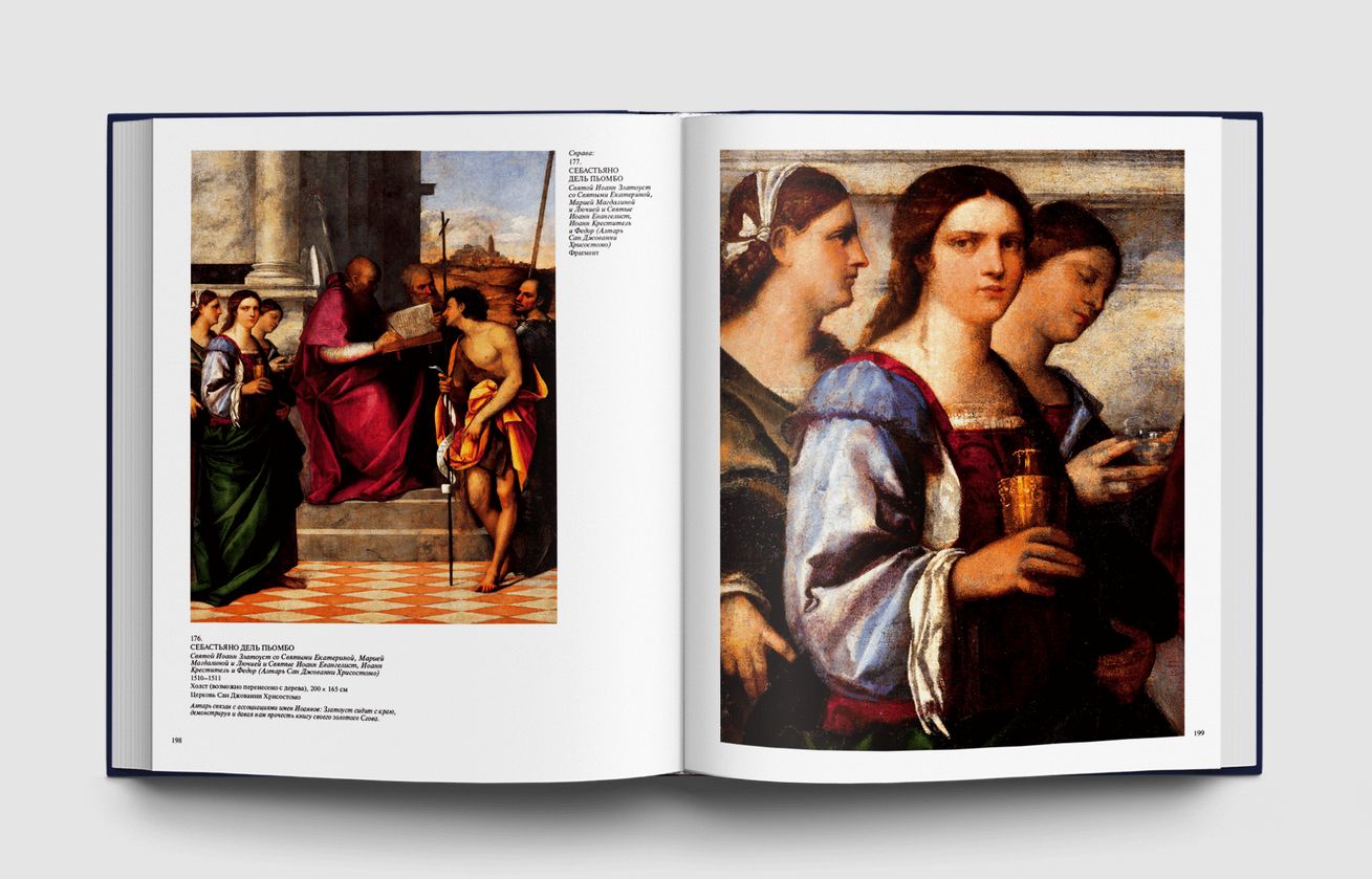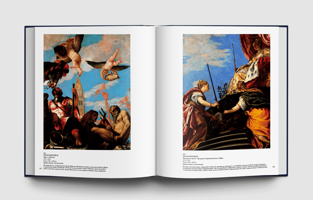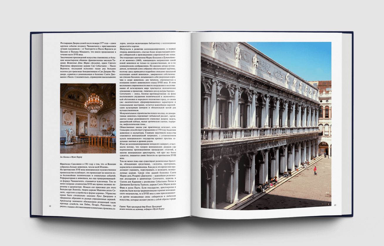 В этом замечательном альбоме собраны великолепные полотна из музеев, церквей, скуол и палаццо Венеции. Живописные произведения, созданные за восемь веков, запечатлели историю, нравы и культуру не только бывшей Свободной Республики, но и всей Европы. Вы можете познакомиться с коллекциями Галереи Академии, Дворца дожей, Ка Редзонико, Музея Коррер, Ка д‘Оро, Скуола Гранде ди Сан Рокко.