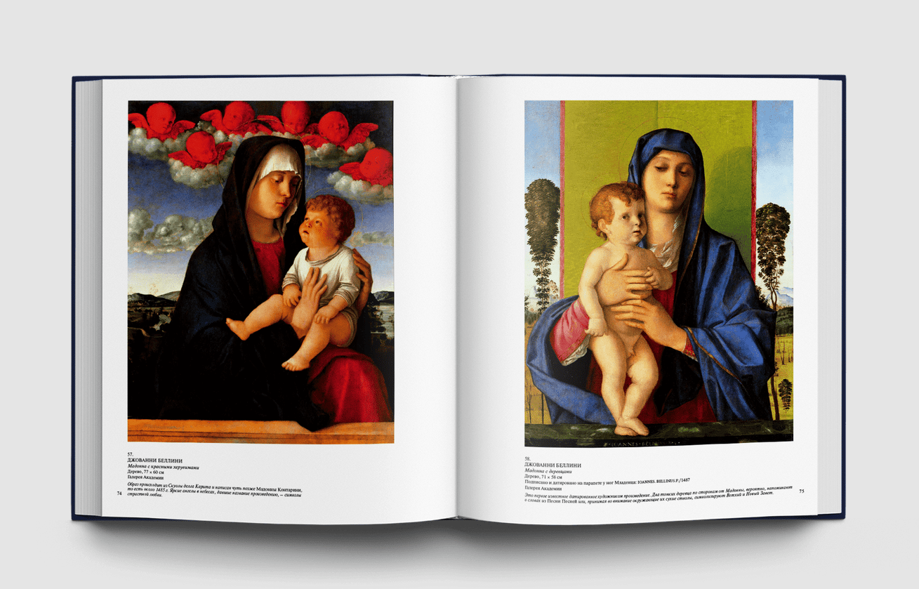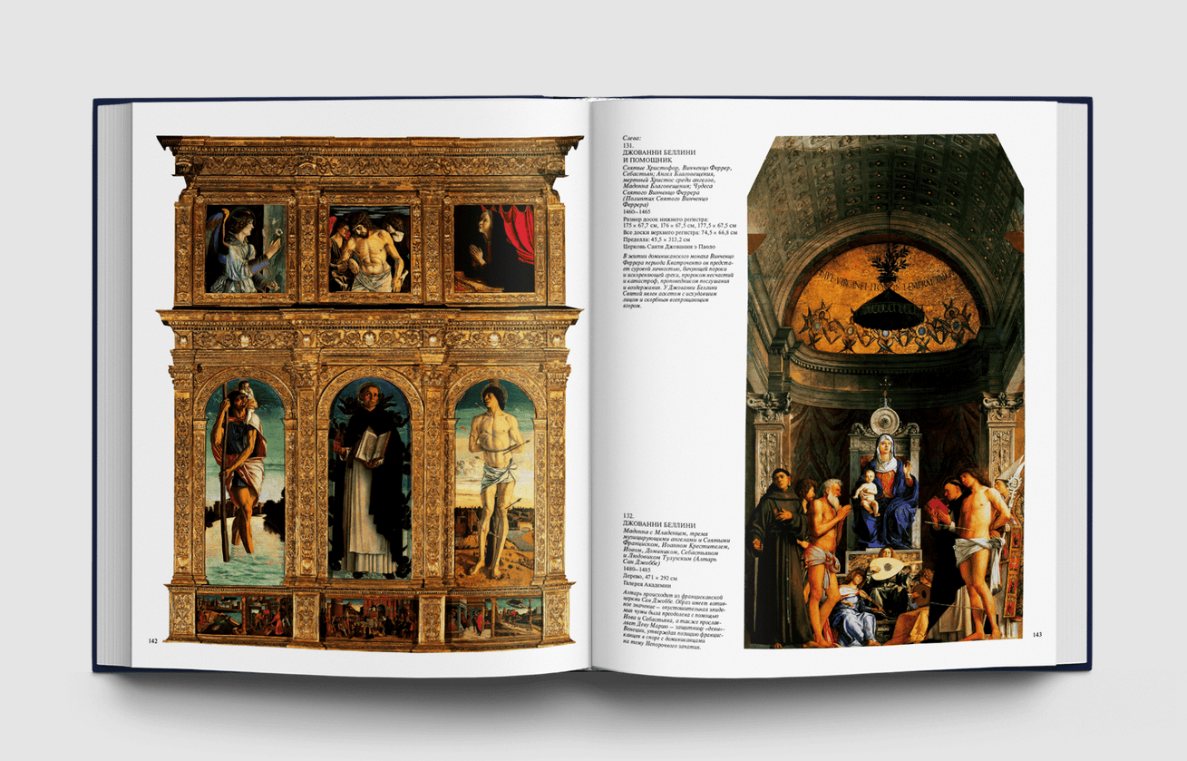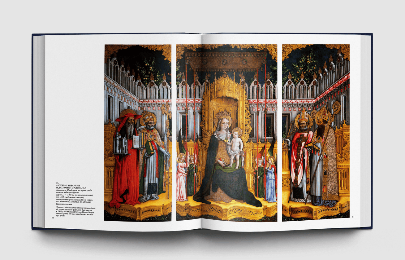 В этом замечательном альбоме собраны великолепные полотна из музеев, церквей, скуол и палаццо Венеции. Живописные произведения, созданные за восемь веков, запечатлели историю, нравы и культуру не только бывшей Свободной Республики, но и всей Европы. Вы можете познакомиться с коллекциями Галереи Академии, Дворца дожей, Ка Редзонико, Музея Коррер, Ка д‘Оро, Скуола Гранде ди Сан Рокко.