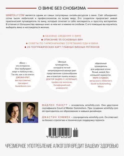 WINEFOLLY является одним из самых популярных ресурсов о вине, который объединяет сотни тысяч любителей и профессионалов по всему миру. Это живой практический путеводитель по вину, который сочетает в себе наглядность и простоту восприятия. В отличие от большинства «винных книг» в нем нет и намека на снобизм. С его помощью вы научитесь выбирать вино и наслаждаться жизнью.