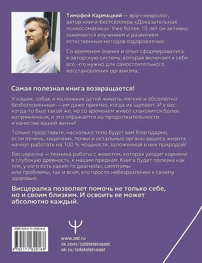 Тимофей Кармацкий — врач-невролог, автор YouTube-канала с миллионной аудиторией, автор книги «Доказательная психосоматика». Уже более 10 лет он активно занимается изучением и развитием естественных методов оздоровления. Со временем знания и опыт сформировались в собственную систему, которая включает в себя все, что нужно для самостоятельного восстановления организма.