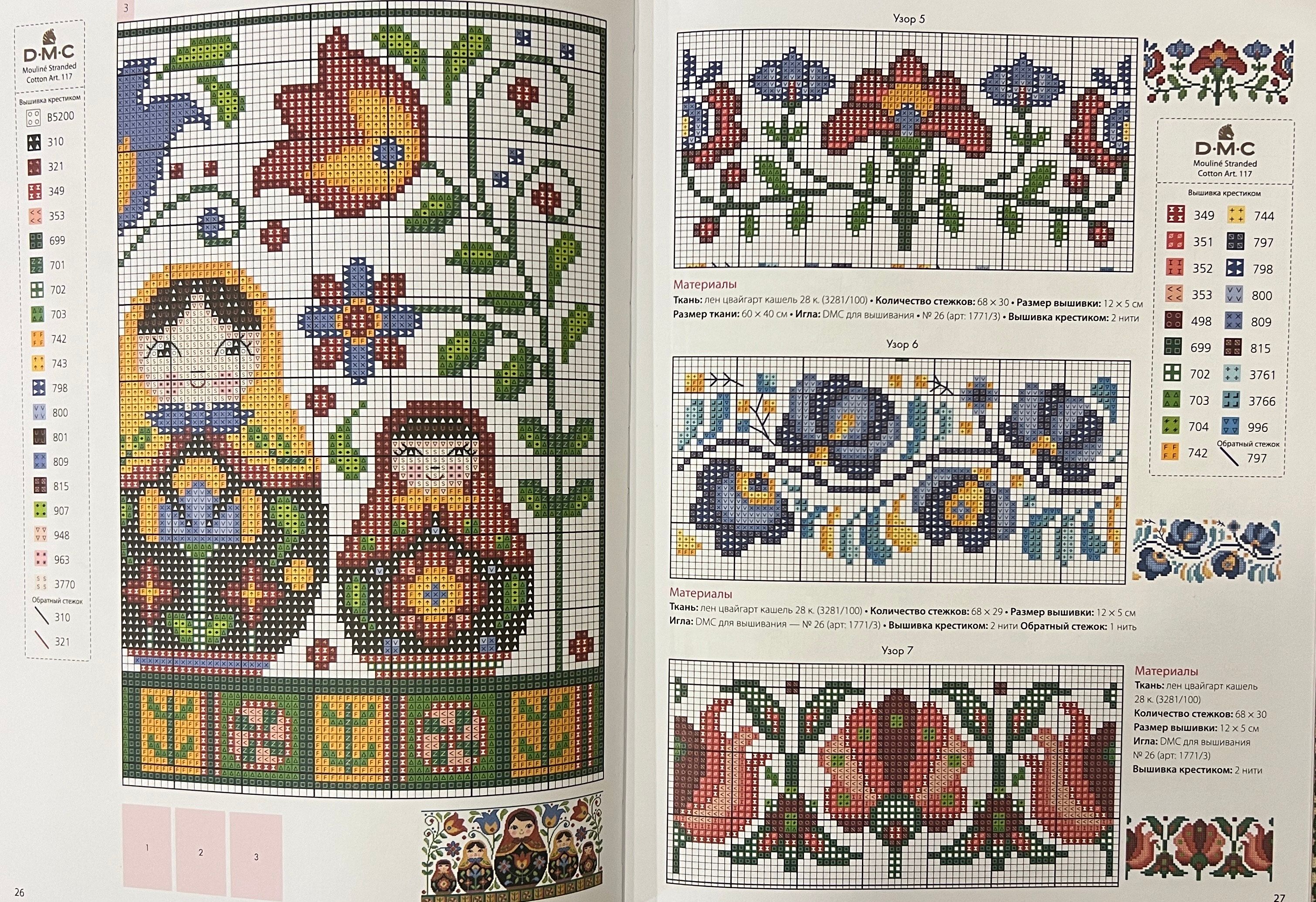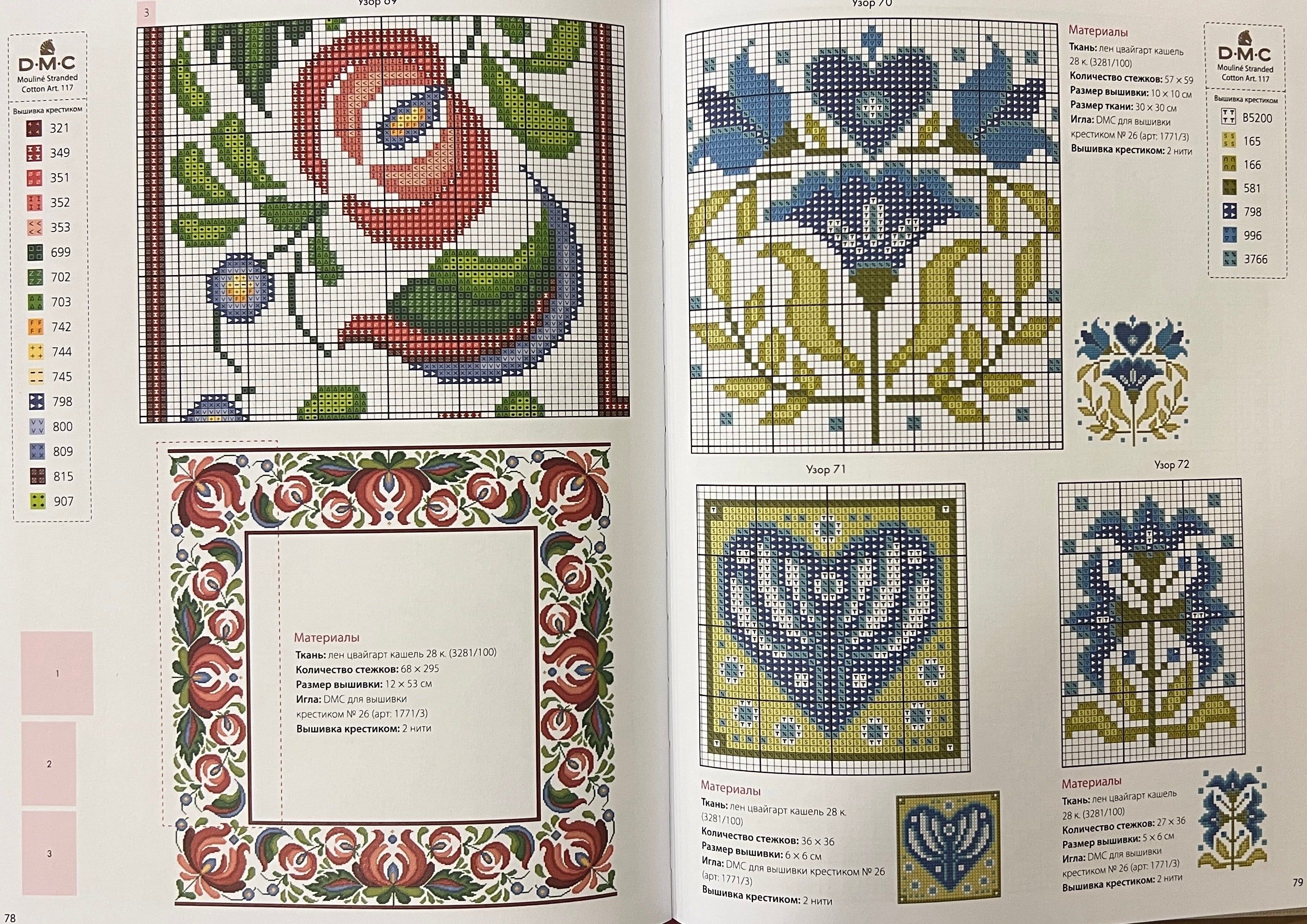 Вышивать по этой книге просто и увлекательно! Почти все мотивы вышиваются полным крестом, использование обратного стежка минимально. А большой формат позволяет сделать схемы крупными и предельно понятными.
