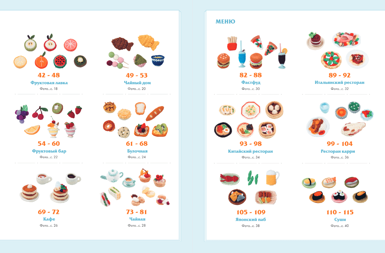 - 150 схем для вязания блюд и напитков со всего мира от Италии до Японии;