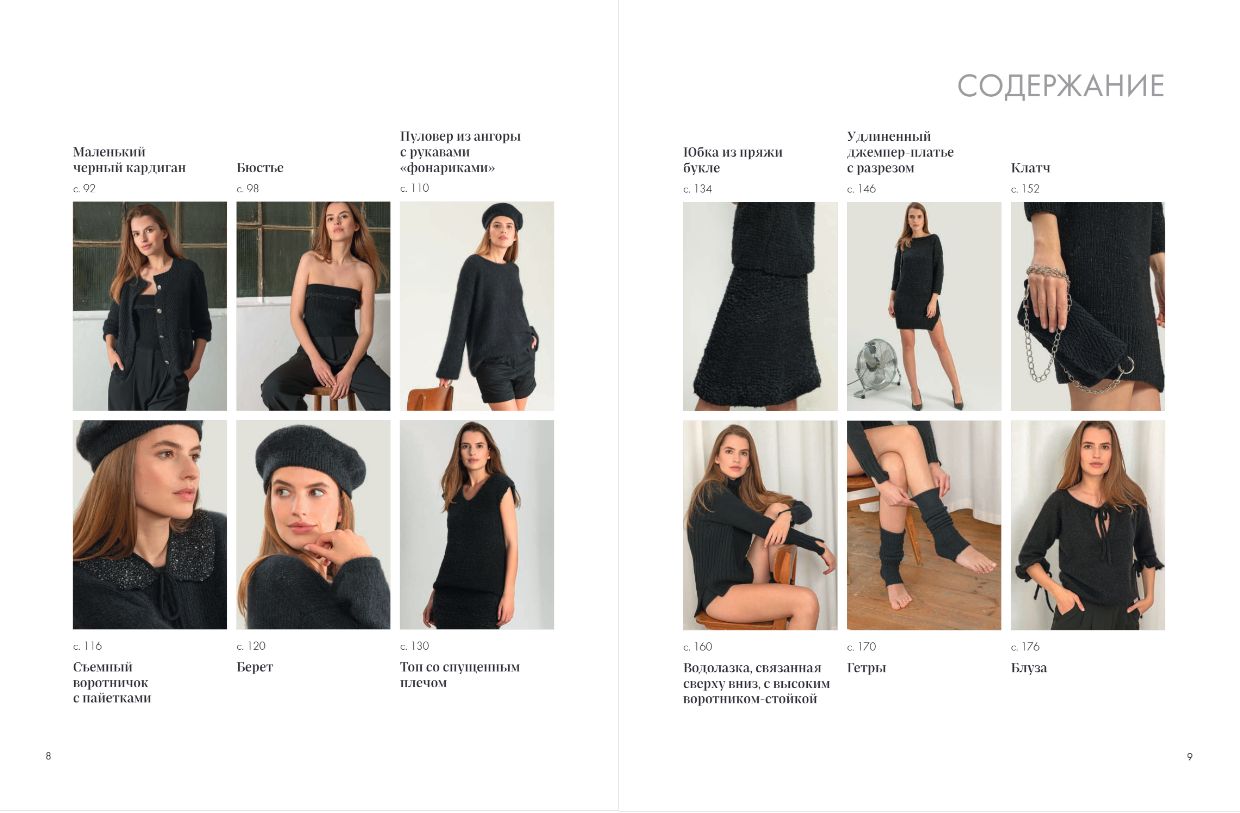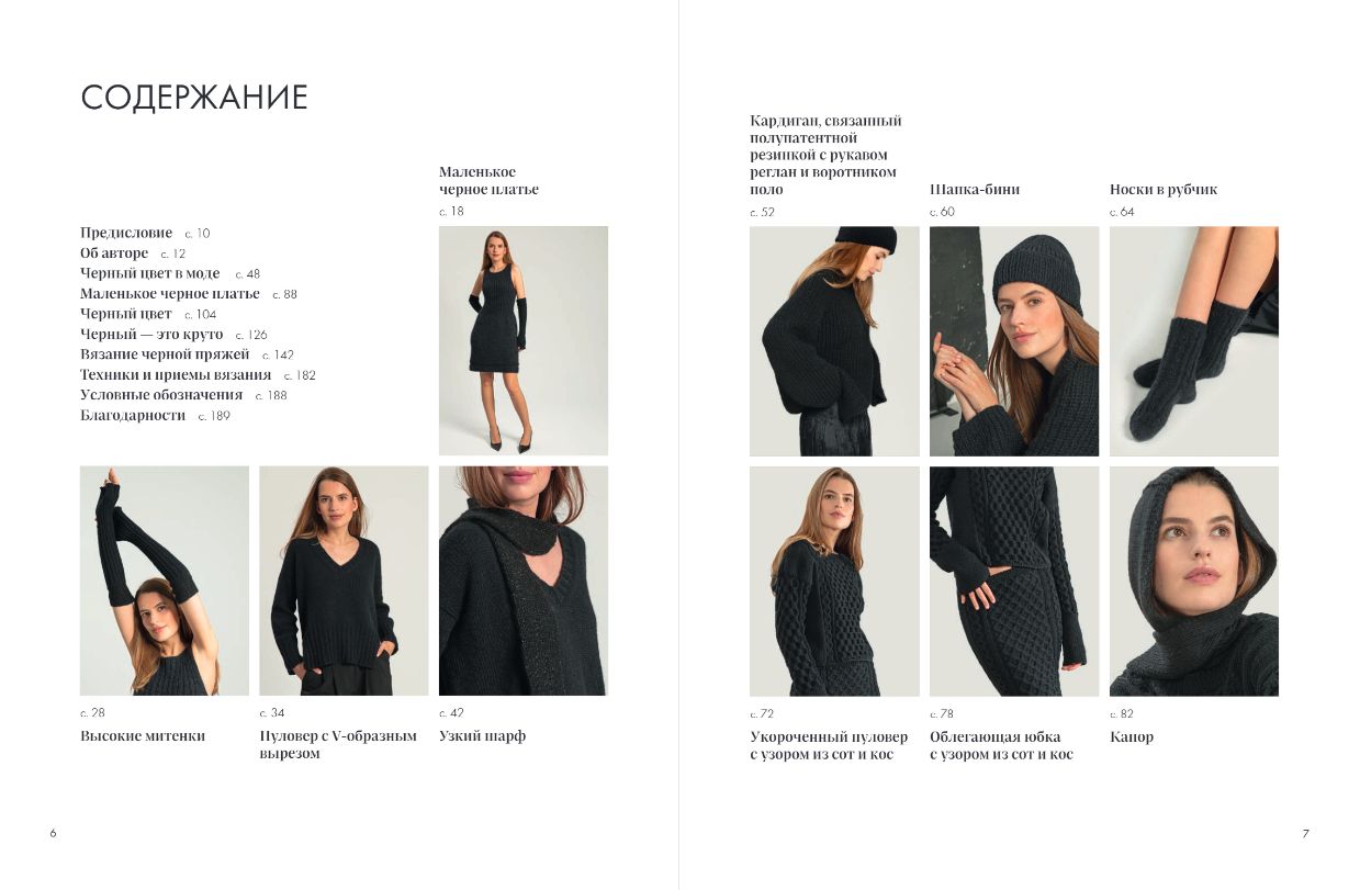От уютных свитеров с косами до свободных кардиганов, от облегающих платьев-футляров до ажурных нарукавников — наши модели сочетают классическую строгость черного с современными дизайнерскими решениями. А благодаря подробным пошаговым инструкциям вы легко сможете создать эти вещи своими руками.