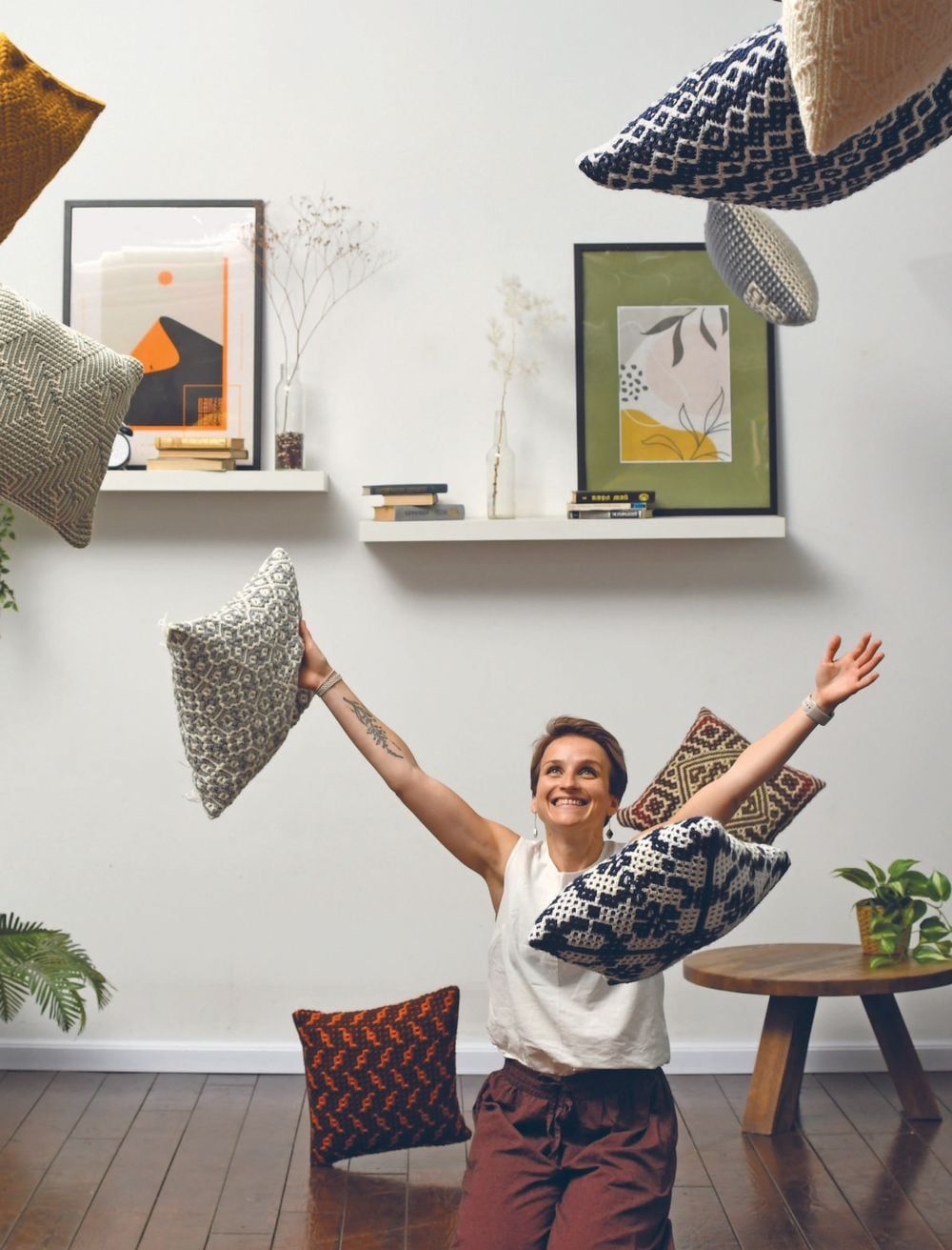 Да, это возможно. Не просто вязать красивые вещи, которые не находят себе применения в жизни, а просто копятся на полках, но превратить пледы, подушки, ковры в неотъемлемые детали цельного облика вашего красивого, стильного, уютного дома.
