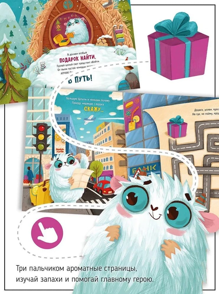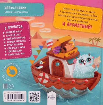 Скорее открывай книгу и присоединяйся к путешествию веселого Йети! Ему предстоит объехать много разных стран, чтобы найти для друга - медведя самый лучший и ароматный подарок на День рождения! Вместе с героями ребёнок встретиться с ароматом райского кокоса, почувствует морской бриз, окунётся в поле душистой лаванды, отыщет путь к магазину с сочным мармеладом и многое другое.