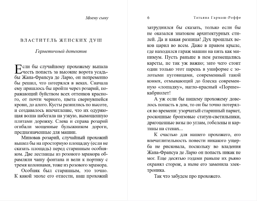 В сборник, который вы держите в руках, входят повесть «Властитель женских душ», написанная в редком жанре «герметичного детектива», и рассказы.