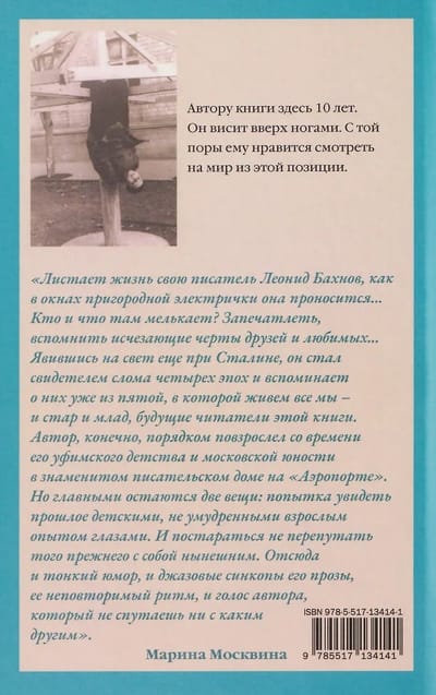 «Листает жизнь свою писатель Леонид Бахнов, как в окнах пригородной электрички она проносится... Кто и что там мелькает? Запечатлеть, вспомнить исчезающие черты друзей и любимых... Явившись на свет еще при Сталине, он стал свидетелем слома четырех эпох и вспоминает о них уже из пятой, в которой живем все мы — и стар и млад, будущие читатели этой книги. Автор, конечно, порядком повзрослел со времени его уфимского детства и московской юности в знаменитом писательском доме на „Аэропорте“. Но главными остаются две вещи: попытка увидеть прошлое детскими, не умудренными взрослым опытом глазами. И постараться не перепутать того прежнего с собой нынешним. Отсюда и тонкий юмор, и джазовые синкопы его прозы, ее неповторимый ритм, и голос автора, который не спутаешь ни с каким другим». Марина Москвина