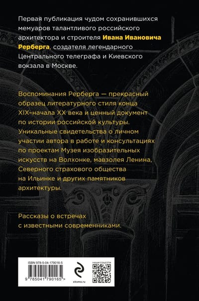 Первая публикация чудом сохранившихся мемуаров талантливого российского архитектора и строителя Ивана Ивановича Рерберга, знаменитого созданием легендарного Центрального телеграфа и Киевского вокзала в Москве.