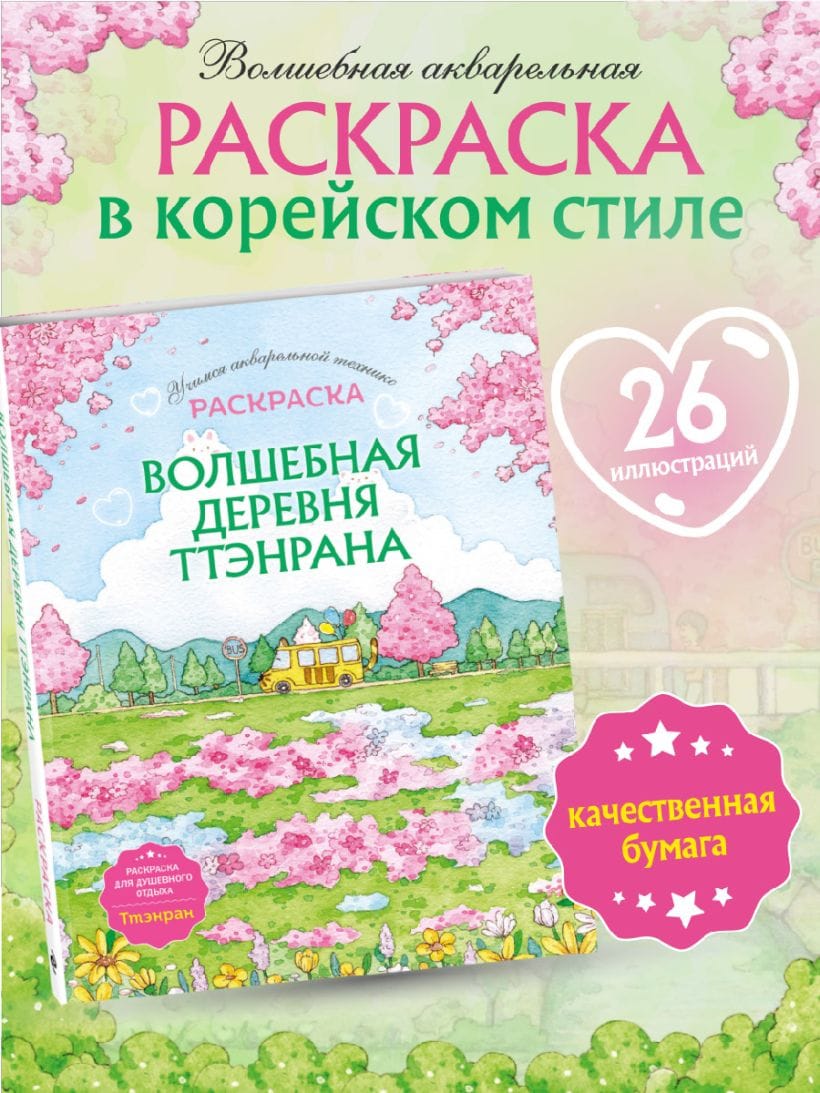 Каждый рисунок — это акварельная иллюстрация, в которой иллюстратор Ттэнран передает свою уникальную атмосферу и нежность. В книге собрано 26 потрясающих рисунков, которые легко раскрашивать.