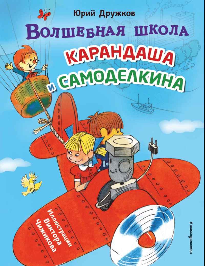 Два весёлых человечка: художник Карандаш и железный мастер Самоделкин – открыли удивительную Волшебную школу. Учеников в ней всего трое, зато они научатся совершать настоящие чудеса! Иллюстрации к сказочной повести Юрия Дружкова «‎Волшебная школа Карандаша и Самоделкина»‎ нарисовал известный российский художник Виктор Чижиков.