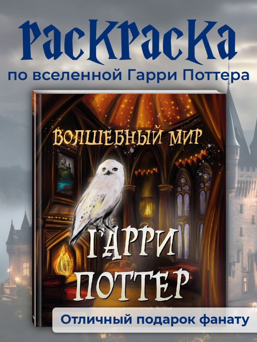 Раскраска обязательно понравится каждому фанату «Гарри Поттера» и фэнтези и станет волшебным подарком на день рождения и любой другой праздник.