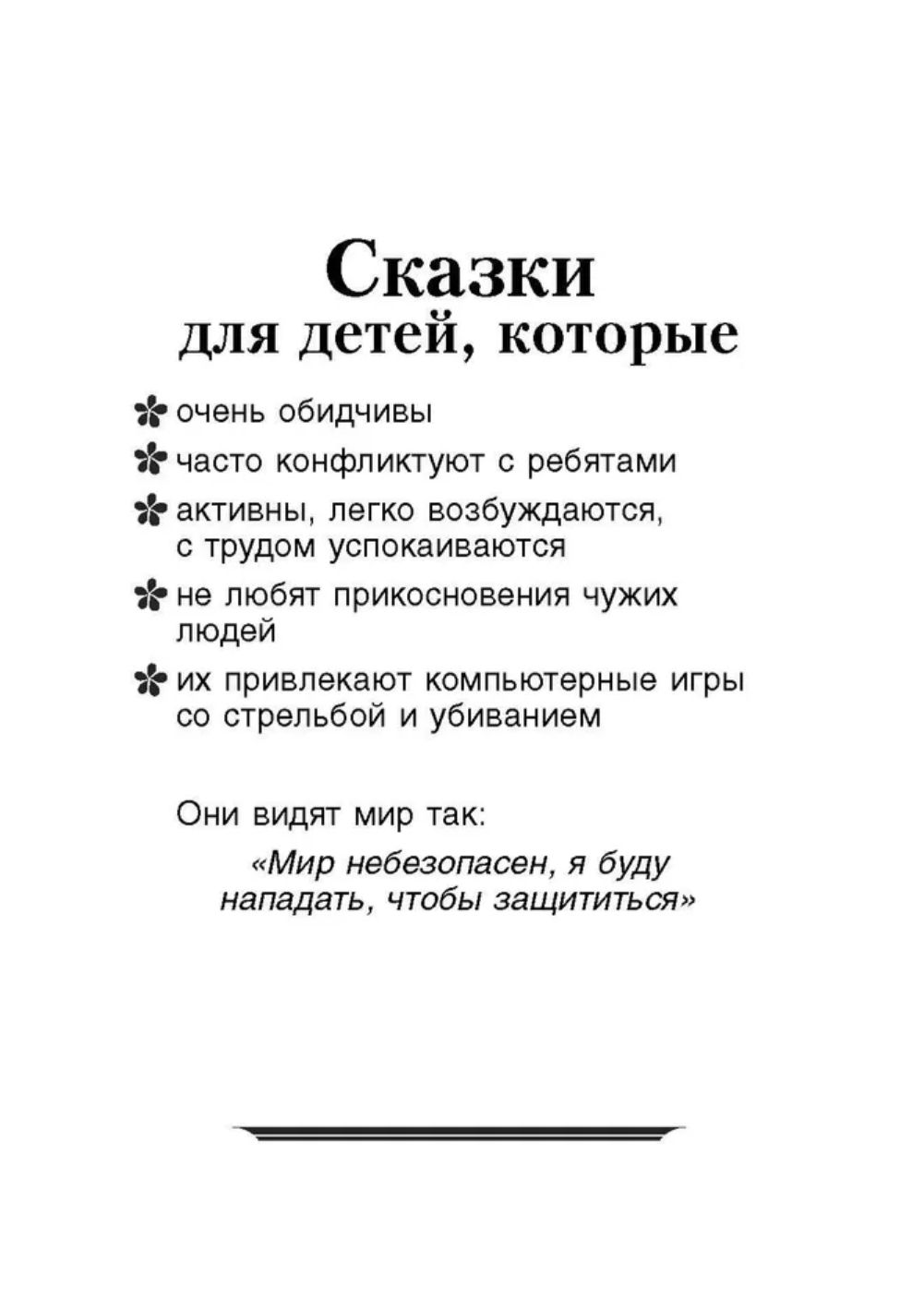 В книге представлены терапевтические сказки, позволяющие формировать у детей 5–10 лет правильное отношение к младшим, уважение к людям, которые их окружают, в том числе отличным от них (с другим цветом кожи, телосложением, какими-либо иными недостатками). Сказки в этой книге учат детей принимать окружающий их мир таким, какой он есть, и не выражать себя за счет других людей. Сказки позволят детям решить многие жизненные трудности на понятном для них языке, а взрослым — лучше понять детский мир, его особенности. Книга будет полезна родителям, а также педагогам и психологам.