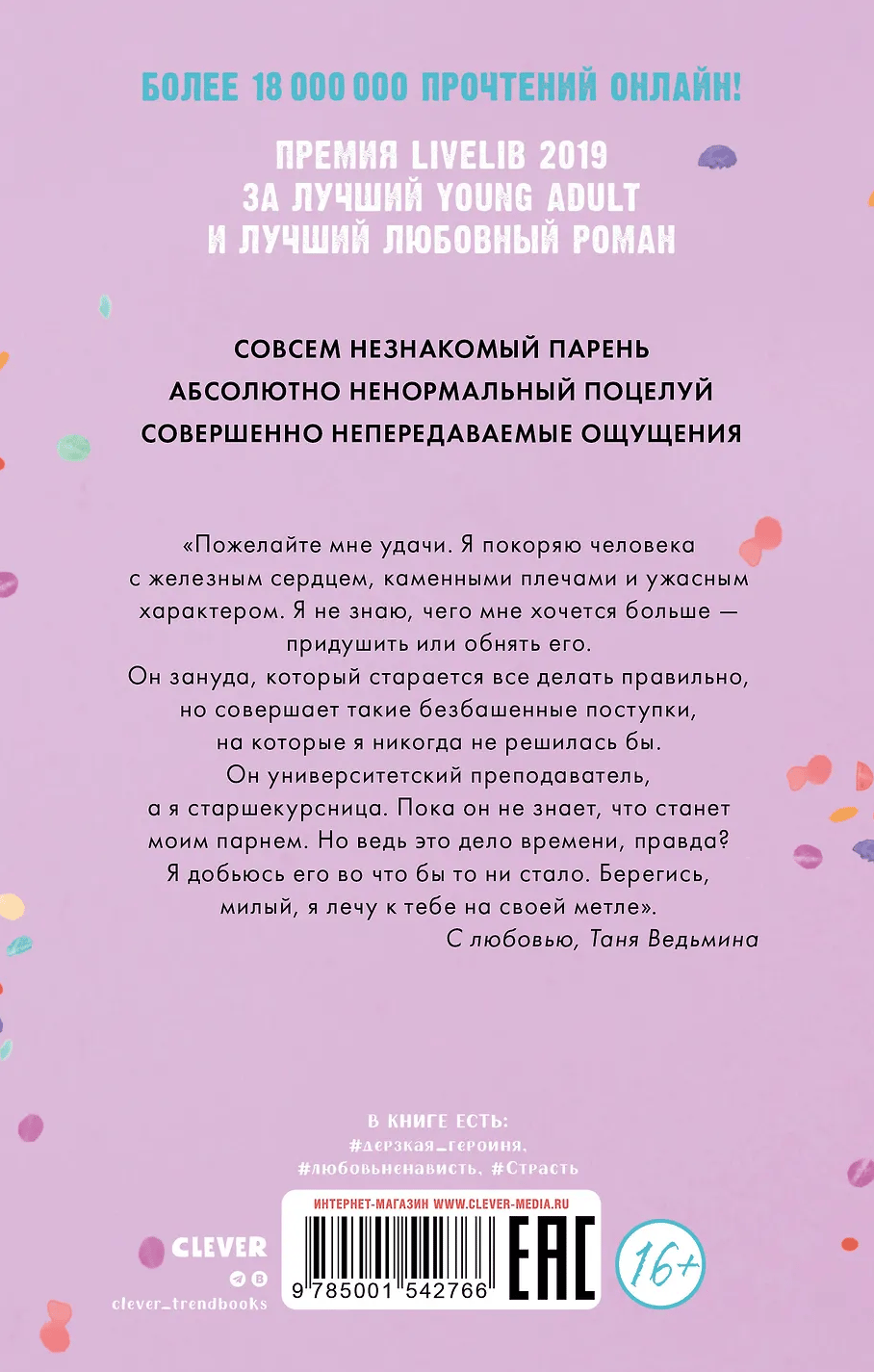 Пожелайте мне удачи. Я покоряю человека с железным сердцем, каменными плечами и ужасным характером. Я не знаю, чего мне хочется больше — придушить или обнять его.  Он зануда, который старается все делать правильно, но совершает такие безбашенные поступки, на которые я никогда не решилась бы.  Он университетский преподаватель, а я старшекурсница. Пока он не знает, что станет моим парнем. Но ведь это дело времени, правда? Я добьюсь его во что бы то ни стало.