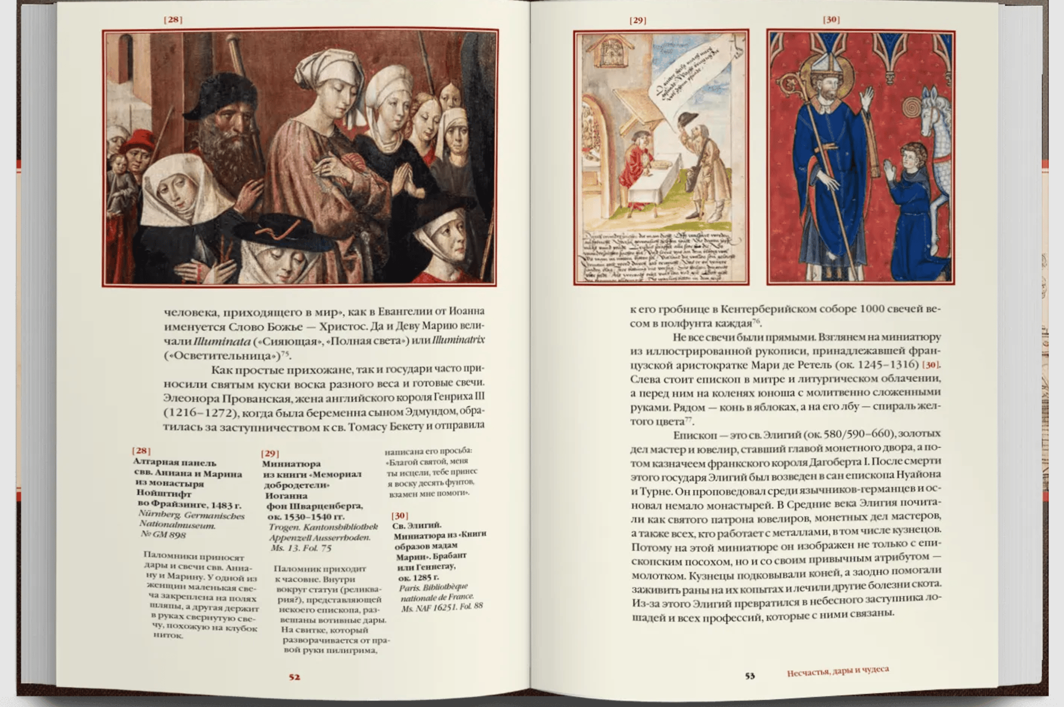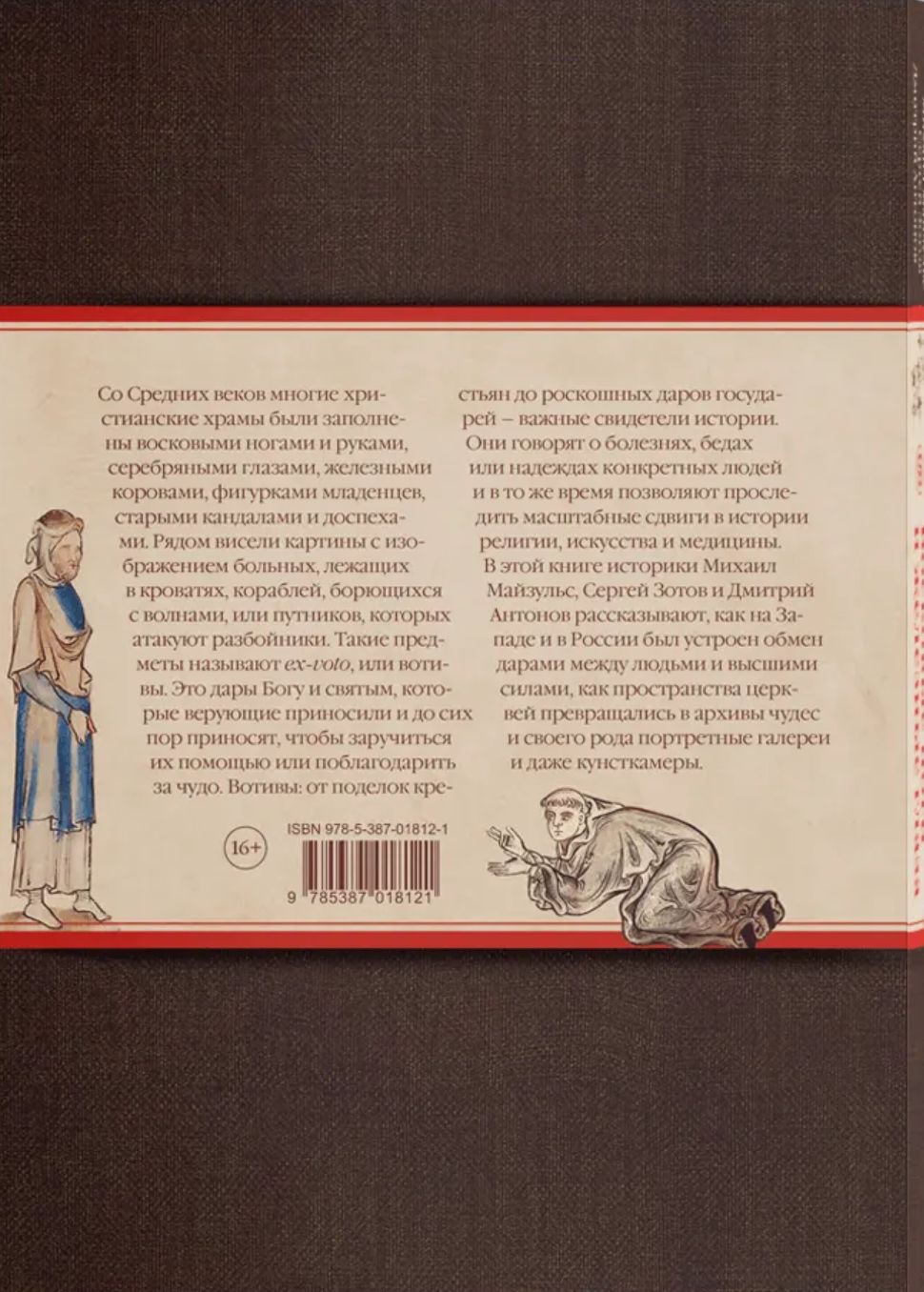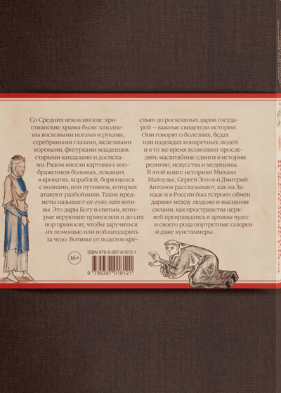 В этой книге историки Михаил Майзульс, Сергей Зотов и Дмитрий Антонов рассказывают, как на Западе и в России был устроен обмен дарами между людьми и высшими силами, как пространства церквей превращались в архивы чудес и своего рода портретные галереи и даже кунсткамеры. Со Средних веков многие христианские храмы были заполнены восковыми ногами и руками, серебряными глазами, железными коровами, фигурками младенцев, старыми кандалами и доспехами. Рядом висели картины с изображением больных, лежащих в кроватях, кораблей, борющихся с волнами, или путников, которых атакуют разбойники. Такие предметы называют ex-voto, или вотивы. Это дары Богу и святым, которые верующие приносили и до сих пор приносят, чтобы заручиться их помощью или поблагодарить за чудо. Вотивы: от поделок крестьян до роскошных даров государей — важные свидетели истории. Они говорят о болезнях, бедах или надеждах конкретных людей и в то же время позволяют проследить масштабные сдвиги в истории религии, искусства и медицины.