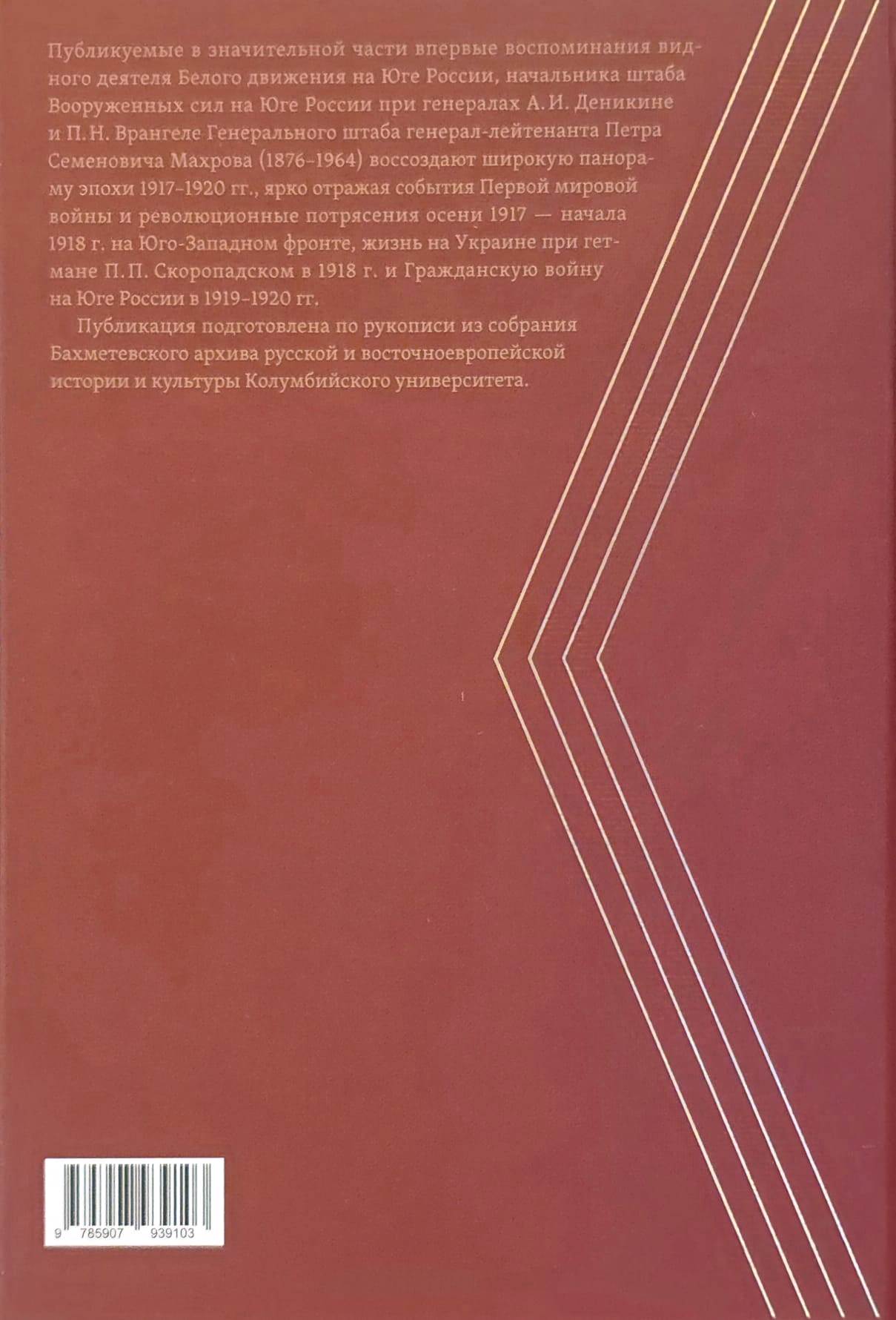 Публикуемые в значительной части впервые воспоминания видного деятеля Белого движения на Юге России, начальника штаба Вооруженных сил на Юге России при генералах А. И. Деникине и П. Н. Врангеле Генерального штаба генерал-лейтенанта Петра Семеновича Махрова (1876–1964) воссоздают широкую панораму эпохи 1917–1920 гг., ярко отражая события Первой мировой войны и революционные потрясения осени 1917 — начала 1918 г. на Юго-Западном фронте, жизнь на Украине при гетмане П. П. Скоропадском в 1918 г. и Гражданскую войну на Юге России в 1919–1920 гг.