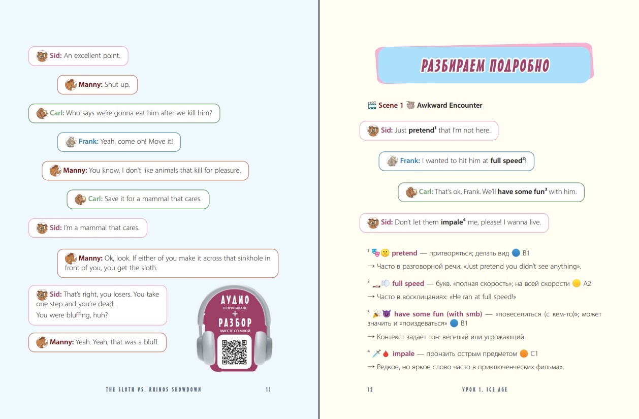 - 20 ярких фрагментов с полезными словами и выражениями.