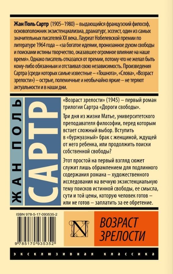 «Возраст зрелости» (1945) — первый роман трилогии Сартра «Дороги свободы».