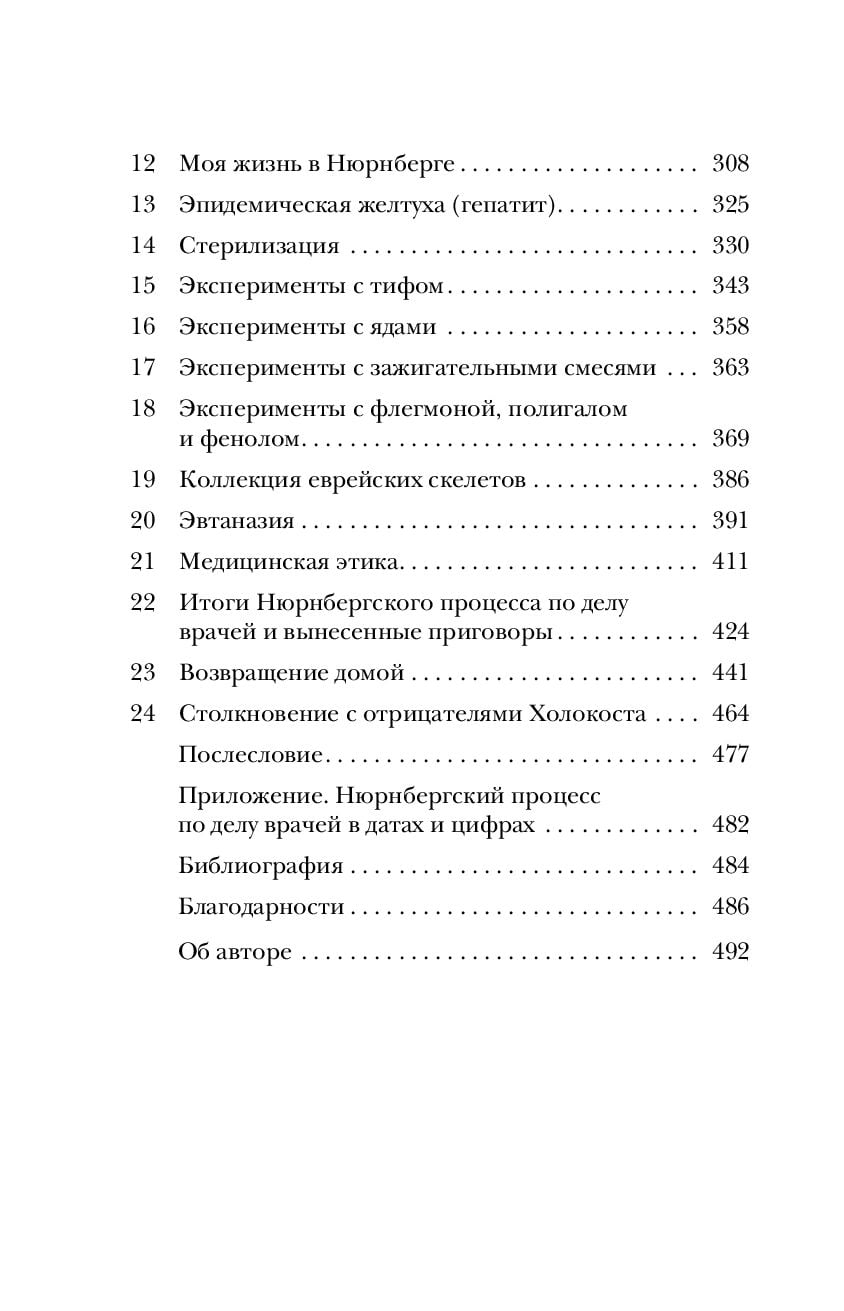 Перед вами леденящая кровь история человеческой жестокости, рассказанная судебной стенографисткой Нюрнбергского процесса над нацистскими врачами. Это рассказ о 20 врачах и 3 их помощниках, пытающих и убивающих людей во имя научных медицинских экспериментов. В книгу включены стенограммы судебных заседаний, которые не были доступны широкой публике, и ранее неопубликованные фотографии преступников и их жертв.