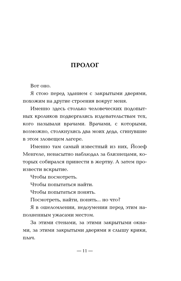 Менгеле, Клауберг, Рашер, Хирт, Бейгльбёк, Гиммлер, Хайм, Оберхойзер, Динг-Шулер — за всеми преступлениями стоят реальные личности, портреты которых нам мастерски точно рисует автор, показывая, что реальность порой хуже любого ночного кошмара.