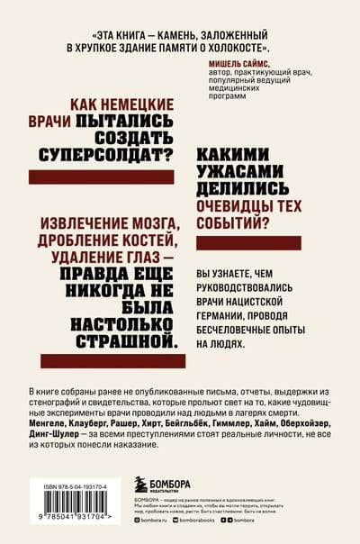Мишель Саймс, практикующий врач и популярный ведущий медицинских программ, предоставляет доказательства этих бесчеловечных деяний, поименно называя тех, кто руководил, мучил, уничтожал.