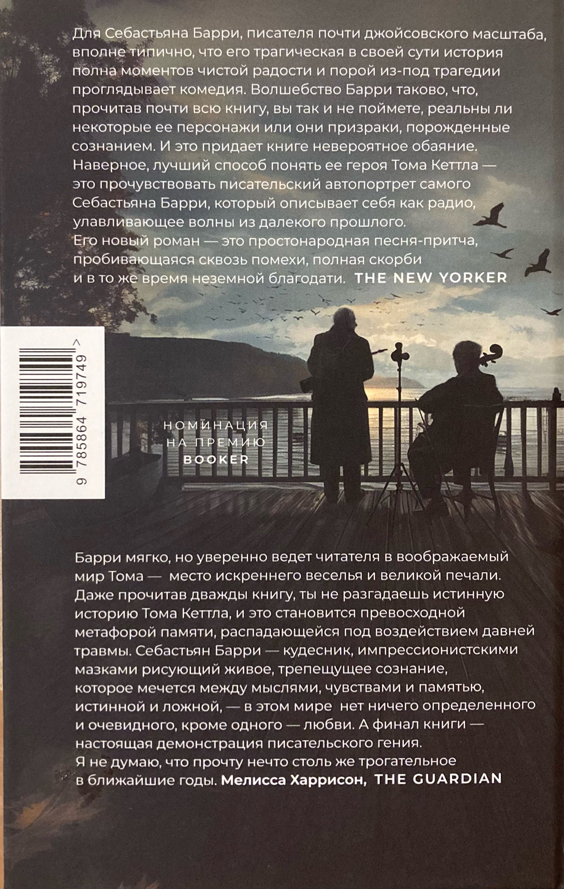 Новый роман автора, книги которого дважды становились финалистами премии Booker, — это тончайшее кружевное полотно о любви, памяти, горе и давно похороненных секретах. Полицейский Том Кеттл почти год назад вышел на пенсию и обосновался в съемной квартирке, расположенной в пристройке викторианского замка, с видом на Ирландское море. Долгие месяцы он ни с кем не разговаривал, да почти и не видел никого, разве что мельком — своего эксцентричного домовладельца и нервную молодую мать, недавно вселившуюся в соседнюю квартиру. Жизнь Тома осталась в прошлом, он живет, не различая реальности и воспоминаний — о любимой жене Джун, дочери Винни и сыне Джо.