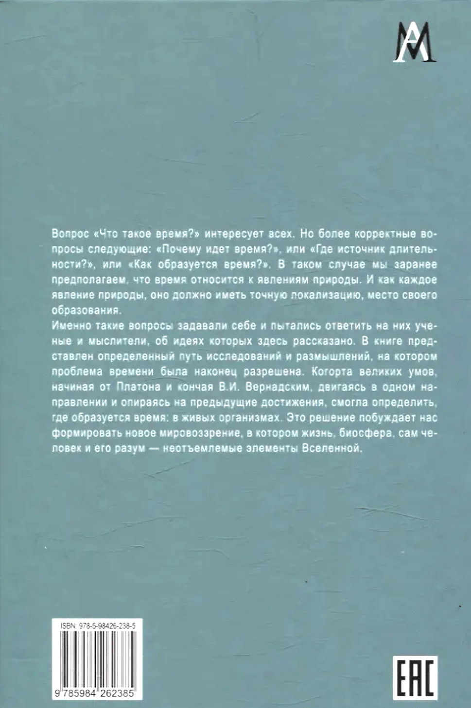 Именно такие вопросы задавали себе и пытались ответить на них ученые и мыслители, об идеях которых здесь рассказано. В книге представлен определенный путь исследований и размышлений, на котором проблема времени была наконец разрешена. Когорта великих умов, начиная от Платона м кончая В.И. Вернадским, двигаясь в одном направлении н опираясь на предыдущие достижения, смогла определить, где образуется время: в живых организмах. Это решение побуждает нас формировать новое мировоззрение, в котором жизнь биосфера, сам человек и его разум - неотъемлемые элементы Вселенной.