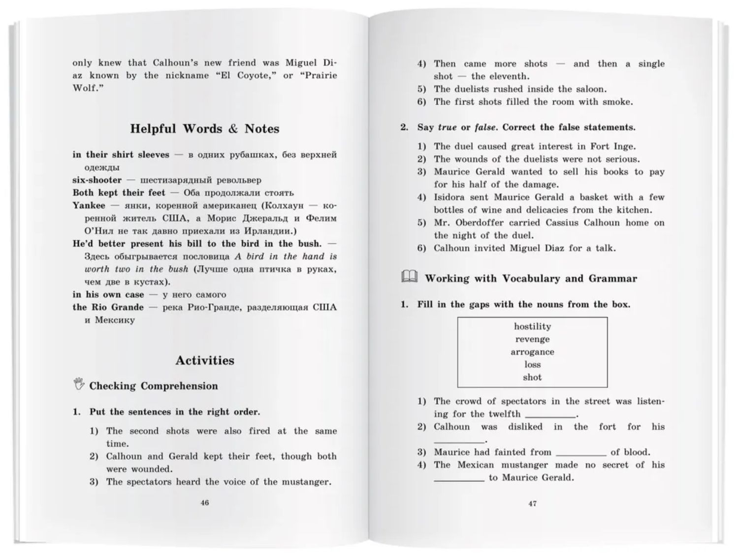 После каждой главы даётся комментарий и перевод трудных слов и выражений, а также упражнения, направленные на проверку понимания текста, отработку лексики и грамматических правил, развитие устной речи. Новые слова включены в словарь, который помещён в конце книги.