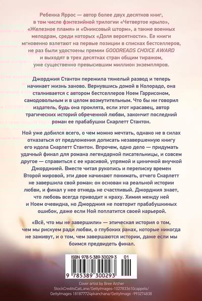 Ной находится на пике своей карьеры. Публикуются романы, выходят экранизации — звезда современной прозы добился всего, о чем можно было мечтать. Однако он не в силах отказаться от предложения дописать самую громкую книгу века — книгу, которую его идол Скарлетт Стантон не завершила. Впрочем, одно дело — придумать удачный финал для романа легендарной писательницы, и совсем другое — справиться с ее красивой, упрямой и циничной внучкой Джорджией.