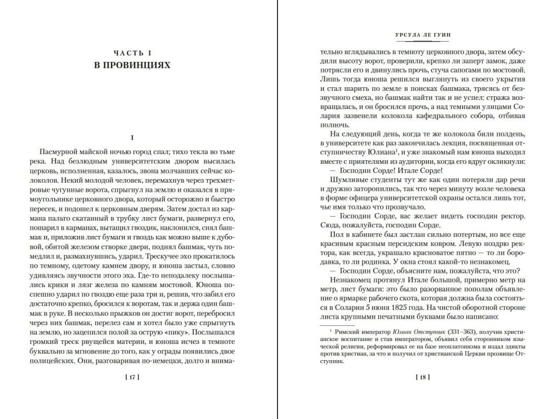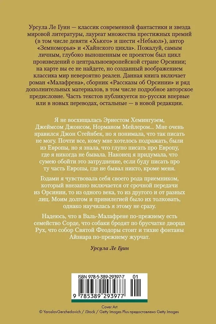 Один из столпов так называемой мягкой, гуманитарной фантастики, Ле Гуин уделяла большое внимание вопросам социологии и психологии, межкультурным конфликтам и антропологии. И пожалуй, самым личным, глубоко выношенным ее проектом был цикл произведений о центральноевропейской стране Орсинии с ее высокогорной столицей и древними лесами, роковыми страстями и многовековой мифологией; на карте вы Орсинию не найдете, но созданный воображением классика мир невероятно реален — каждой своей пядью, каждым эпизодом вымышленной, но такой знакомой истории.