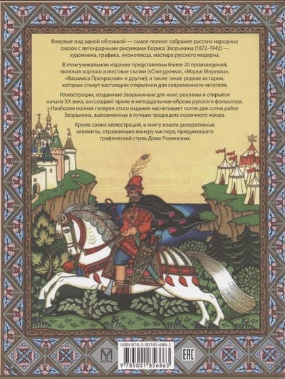 Впервые под одной обложкой — самое полное собрание русских народных сказок с легендарными рисунками Бориса Зворыкина (1872–1942) — художника, графика, иконописца, мастера русского модерна.