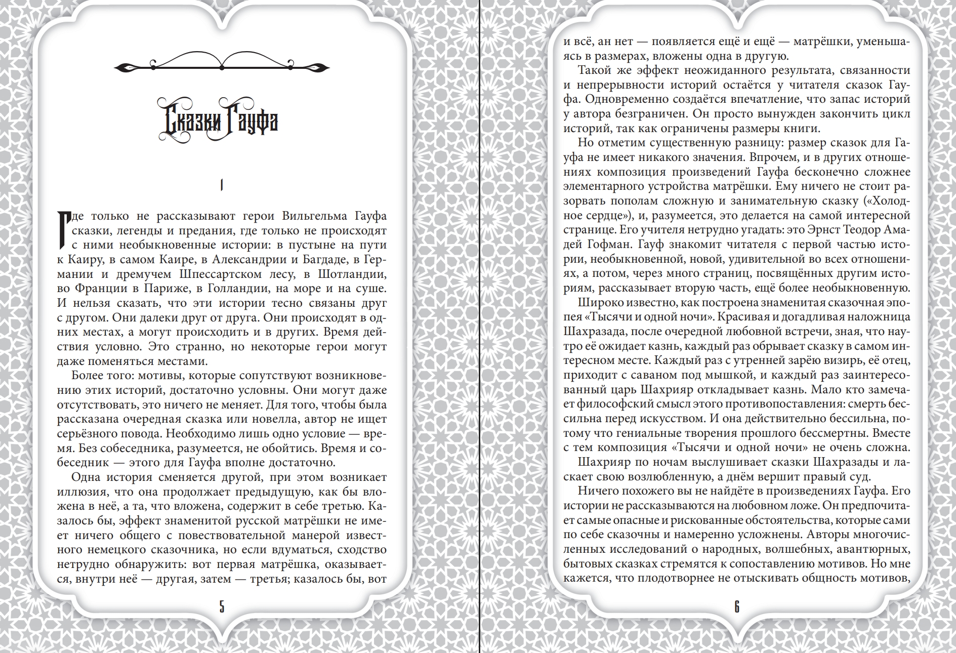 В этом подарочном коллекционном издании представлены лучшие переводы оригинальных сказок Гауфа в той правильной и интригующей последовательности, которая была задумана автором. Это делает данную книгу уникальной, поскольку большинство публикаций Гауфа на русском языке неполные и сказки в них идут в произвольном порядке и зачастую с адаптацией для детей.