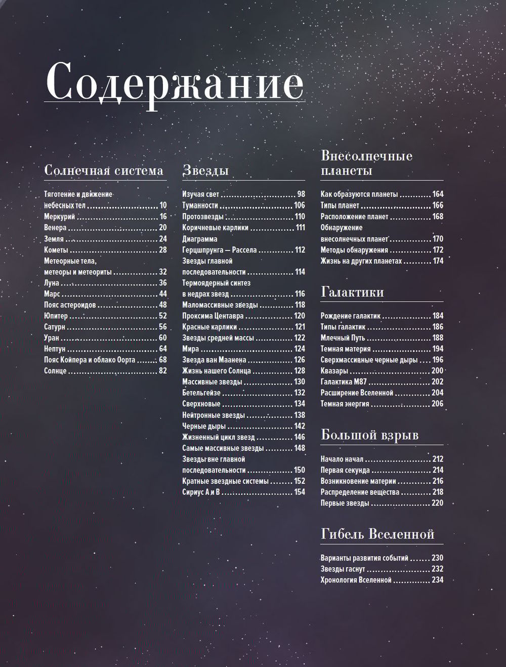 Небо с древних времен завораживало человека. От шумерских лунных календарей до снимков НАСА люди не перестают задаваться вопросами, как устроен космос. Зак Скотт приглашает читателя в увлекательное путешествие по Вселенной, доступно рассказывая о Солнечной системе, рождении галактик, темной материи, Большом взрыве и многом другом. Скотт пишет просто о сложном: что такое гравитация, как светят звезды, когда закончился Большой взрыв и закончился ли вообще.