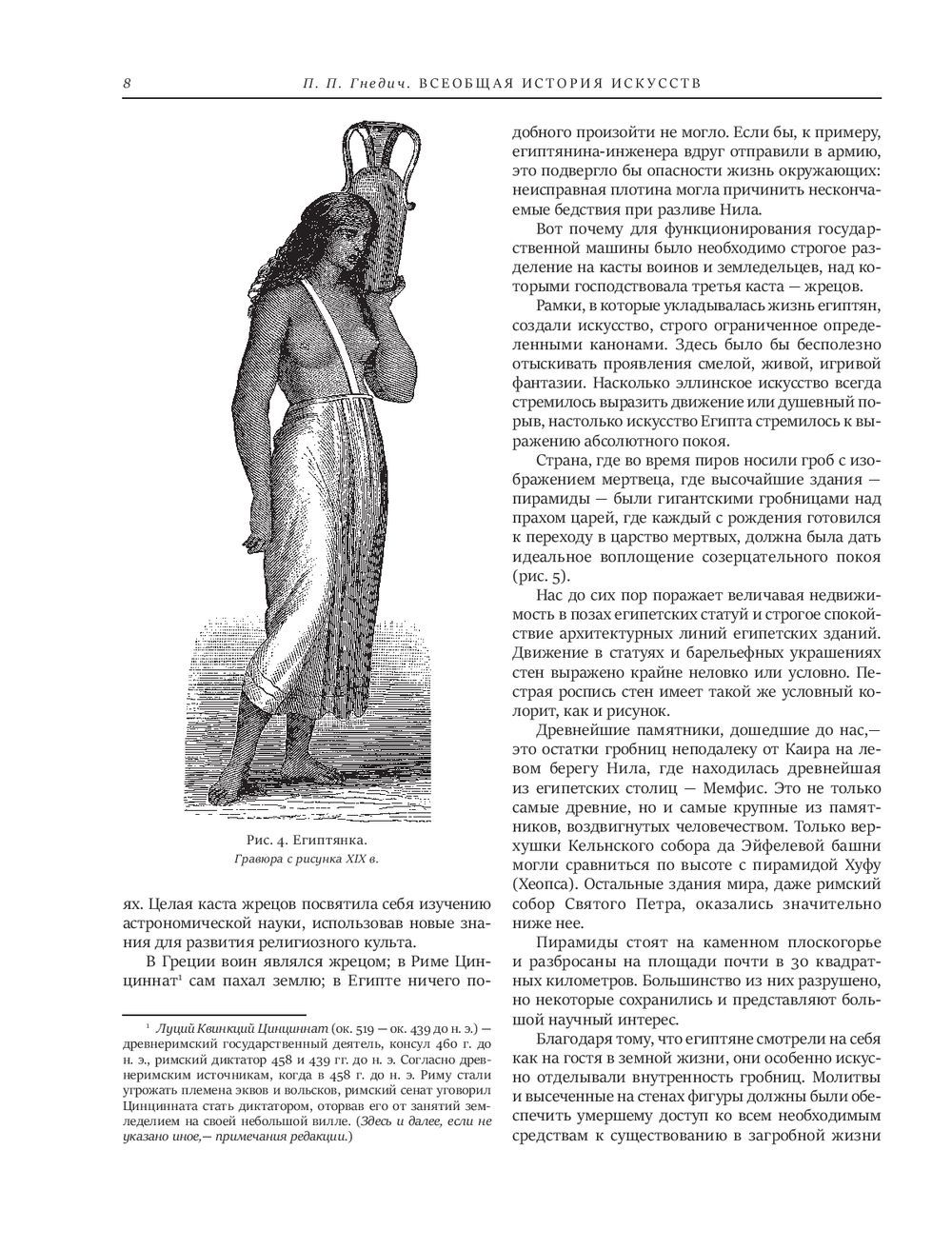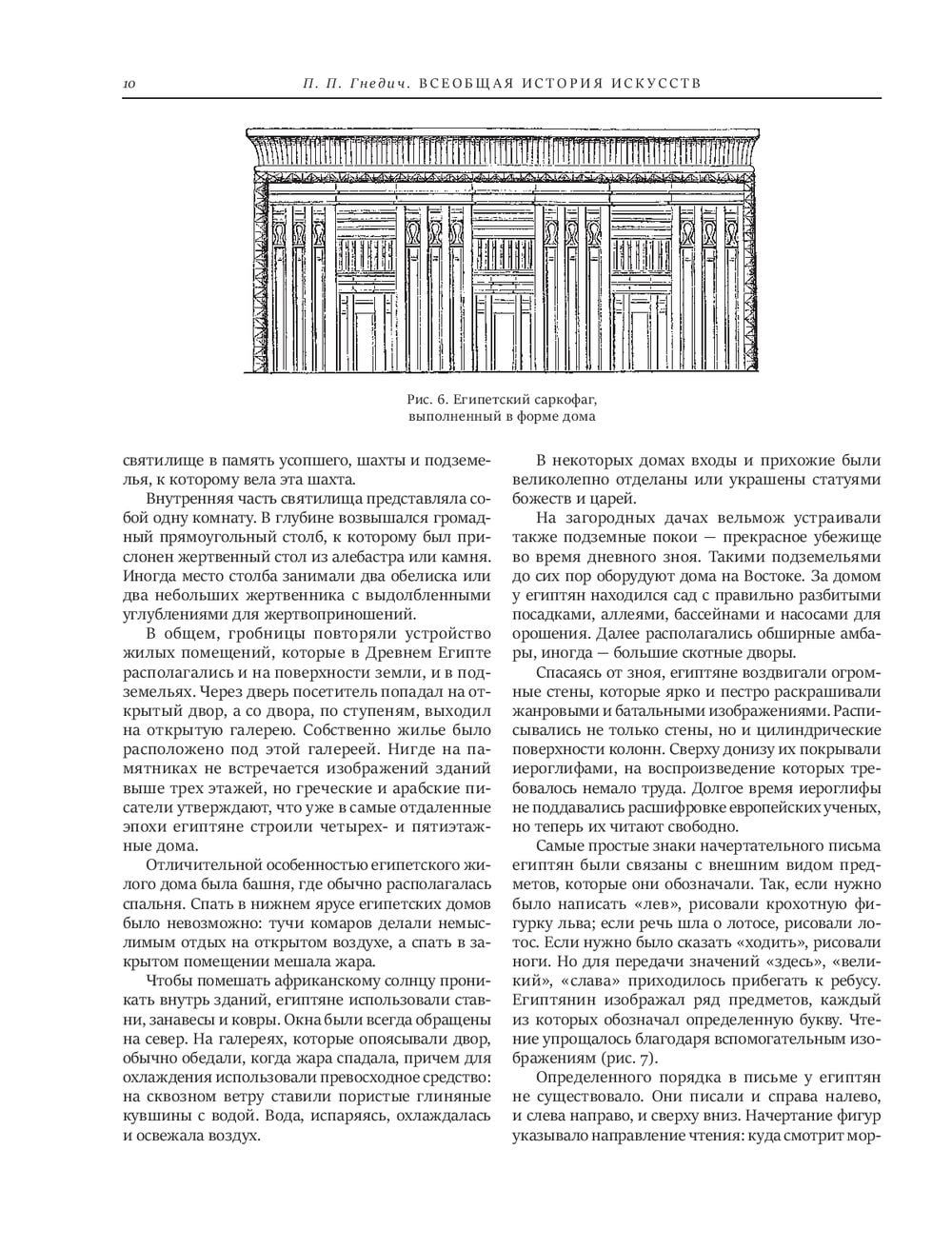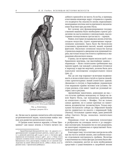 Предваряя первое издание своей книги, писатель, драматург и переводчик Петр Петрович Гнедич так определял стоящую перед ним цель: "Настоящая книга — это первая попытка дать на русском языке, в живом и сжатом изложении, картину общего хода развития искусств с древнейших времен до наших дней…" И это ему удалось — в чем и заключается главная заслуга П. П. Гнедича, авторитет которого как популяризатора классических знаний об искусстве по-прежнему непререкаем.