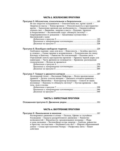 Эта книга — рассказ о фундаментальной научной картине мира в развитии от более наглядного к более абстрактному: от брошенного камня до объяснения уравнений Эйнштейна и Шрёдингера. Человек разбирается в устройстве Вселенной, наблюдая за движением, догадываясь о правилах, которые регулируют все, что происходит, и получая подсказки о скрытых частях мира или о новых правилах из несоответствий между ожидаемым и реальным движением: знаменитые примеры включают предсказанное существование Нептуна, Планеты 9 и невидимого вещества в галактиках, причины ускоренного расширения Вселенной, квантовую природу теплового излучения.