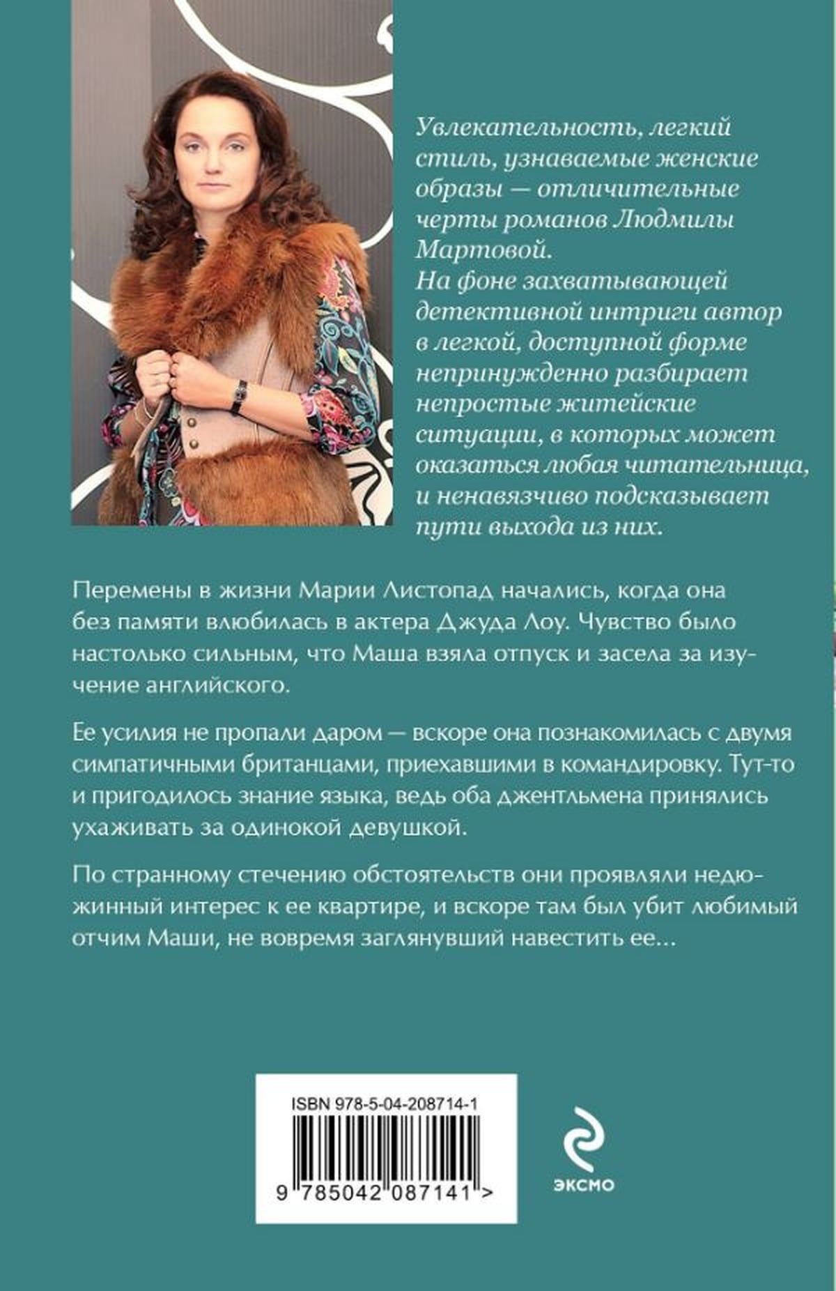 Перемены в жизни Марии Листопад начались, когда она без памяти влюбилась в актера Джуда Лоу. Чувство было настолько сильным, что Маша взяла отпуск и засела за изучение английского. Ее усилия не пропали даром — вскоре она познакомилась с двумя симпатичными британцами, приехавшими в командировку. Тут-то и пригодилось знание языка, ведь оба джентльмена принялись ухаживать за одинокой девушкой. По странному стечению обстоятельств, они проявляли недюжинный интерес к ее квартире, и вскоре там был убит любимый отчим Маши, не вовремя заглянувший навестить ее…